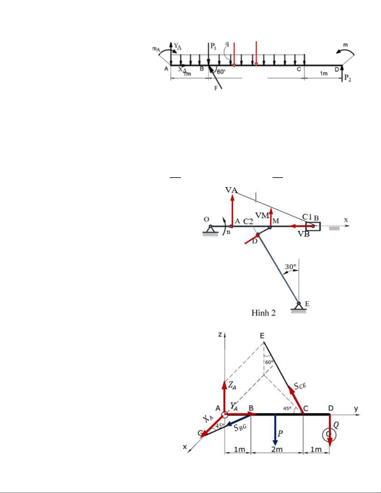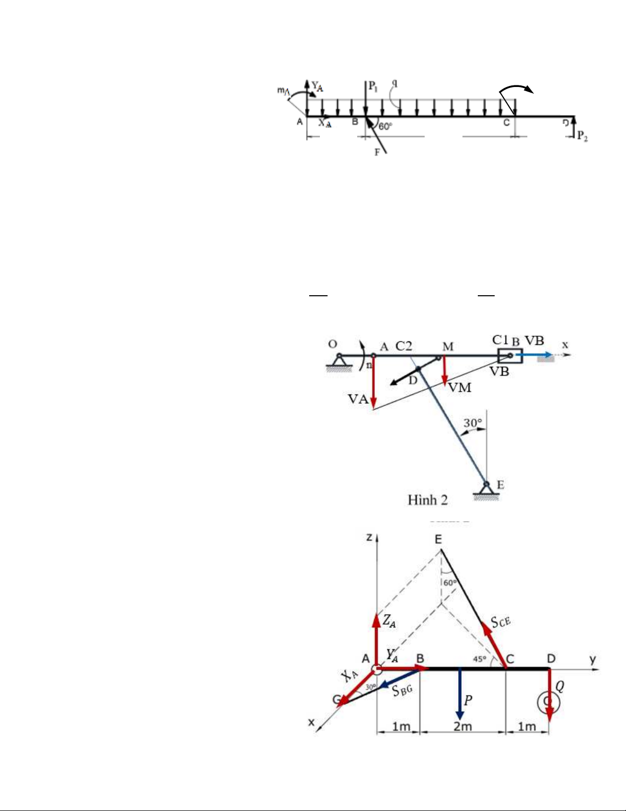 ∑𝐹𝑍 = 𝑍𝐴−Q−P +𝑺𝑪𝑬.𝐜𝐨𝐬𝟔𝟎=0 (0,25điểm)