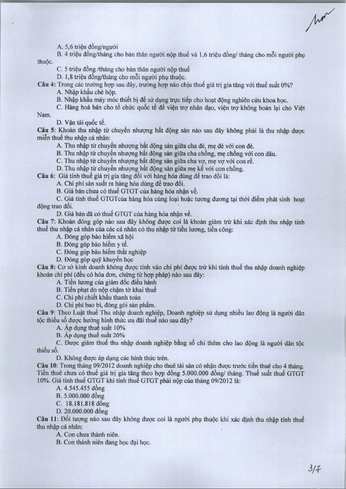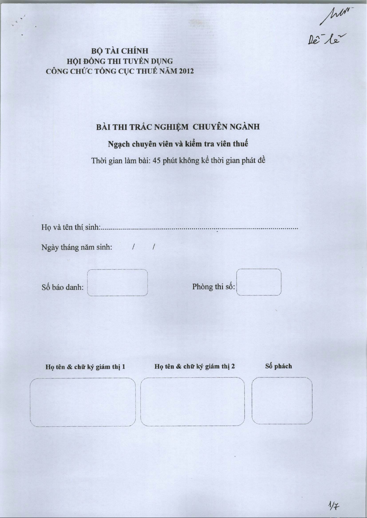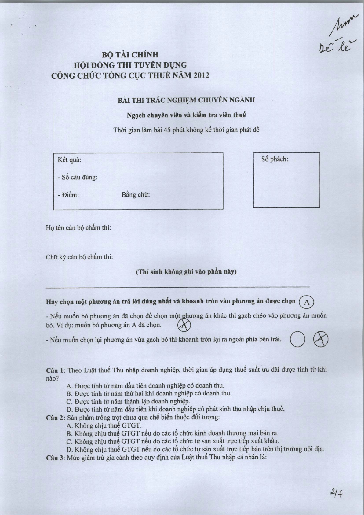 Đề thi công chức năm 2012 chuyên ngành chuyên viên và kiểm tra thuế: Đề lẻ