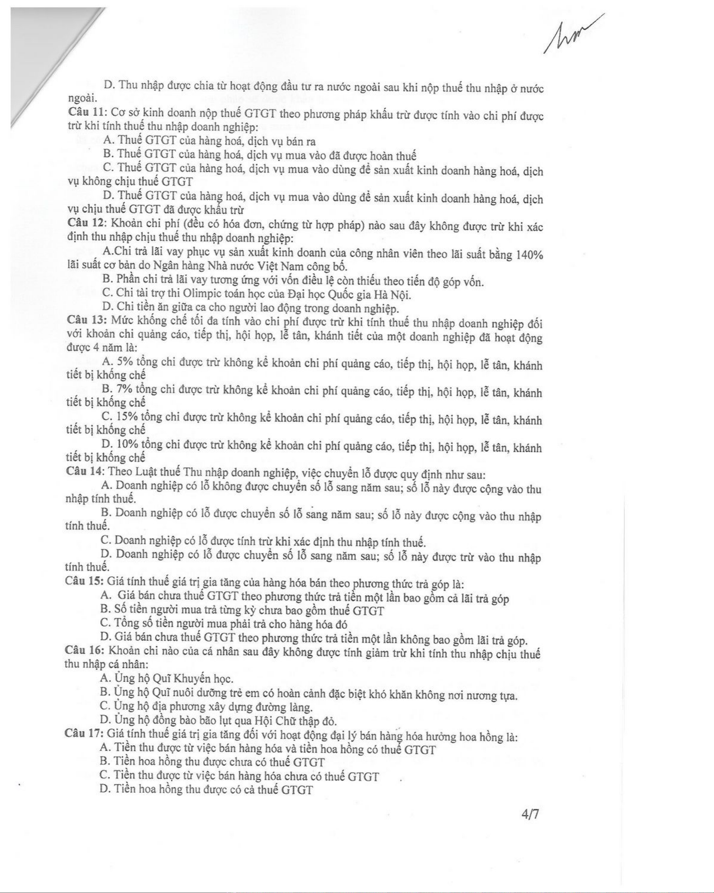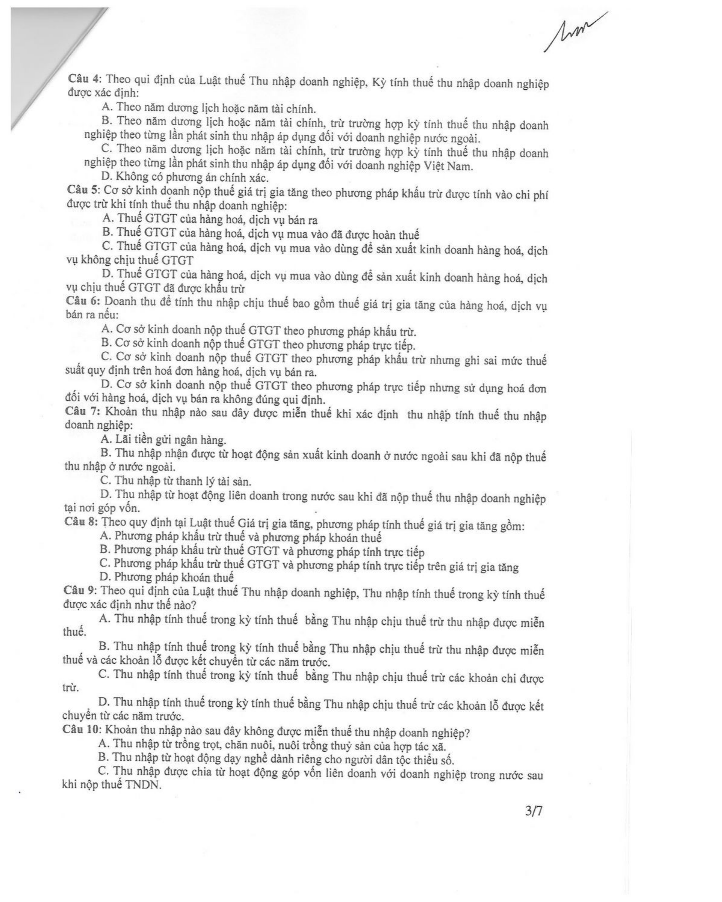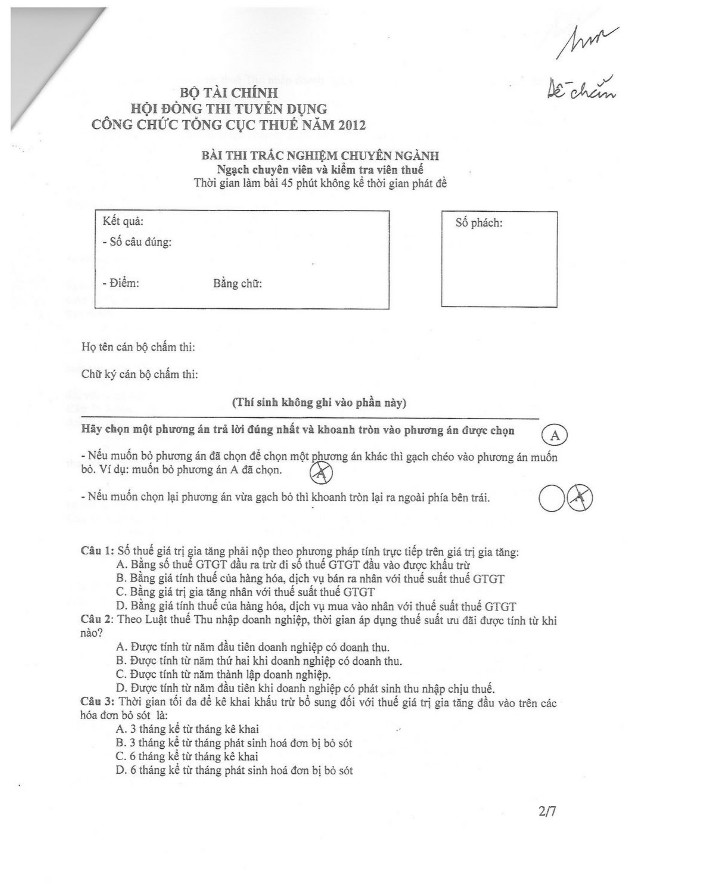 Đề thi công chức năm 2012 chuyên ngành ngạch chuyên viên và kiểm tra viên thuế: Đề chẵn