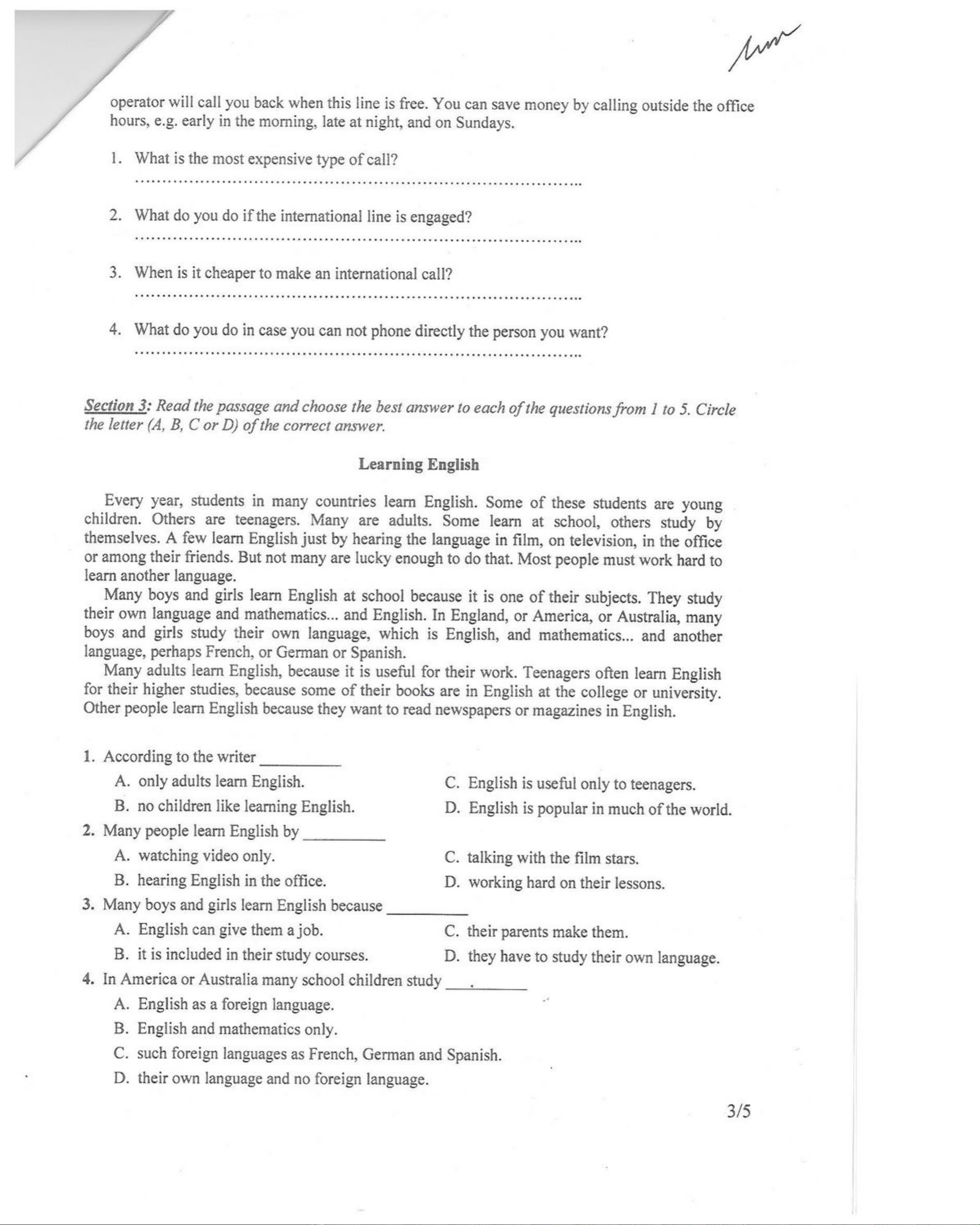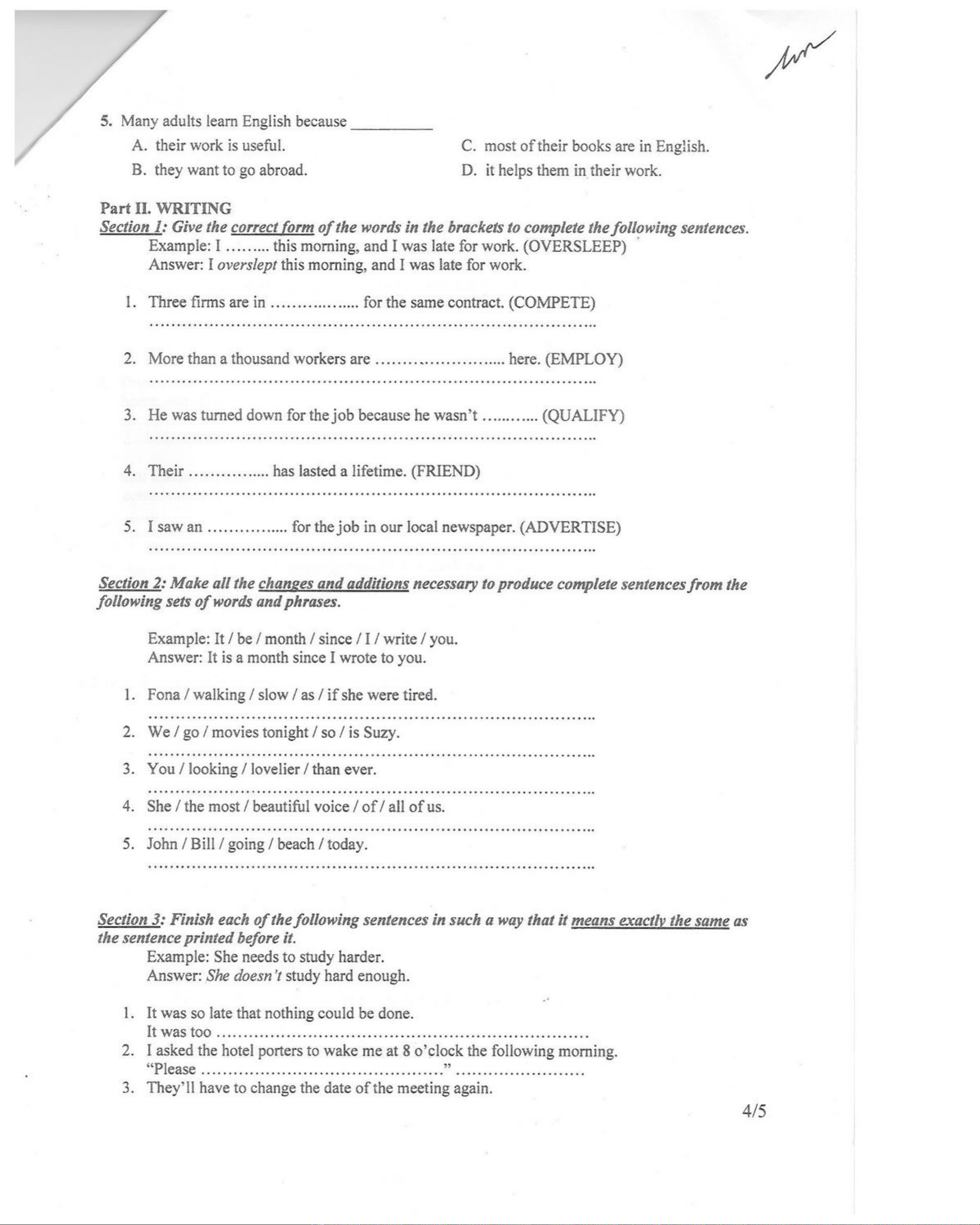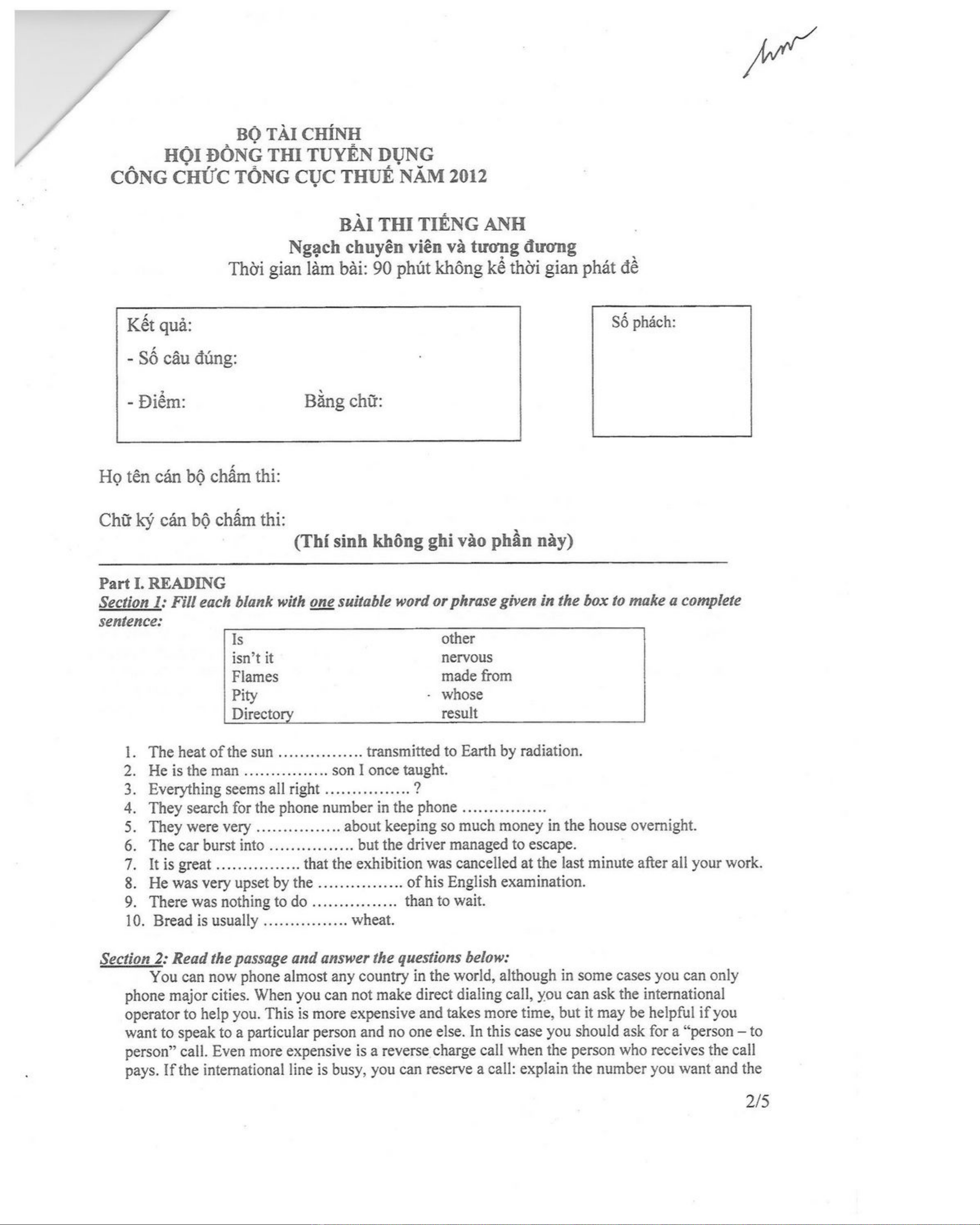 Đề thi công chức tổng cục thuế năm 2012 môn tiếng Anh