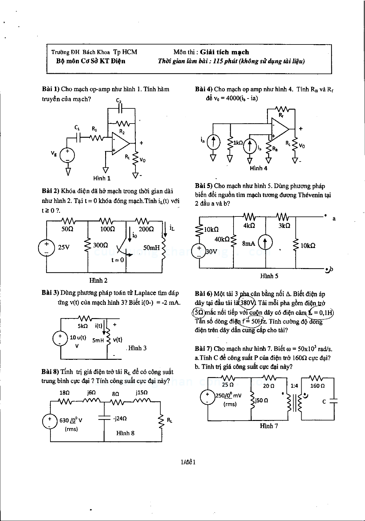 Đề thi cuối học kỳ môn Giải tích mạch giúp các bạn sinh viên có thêm tài liệu để củng cố các kiến thức, ôn tập kiểm tra, thi cuối kỳ. Đây là tài liệu bổ ích để các em ôn luyện và kiểm tra kiến thức tốt, chuẩn bị cho kì thi học kì. Mời các em và các quý thầy cô giáo bộ môn tham khảo.
