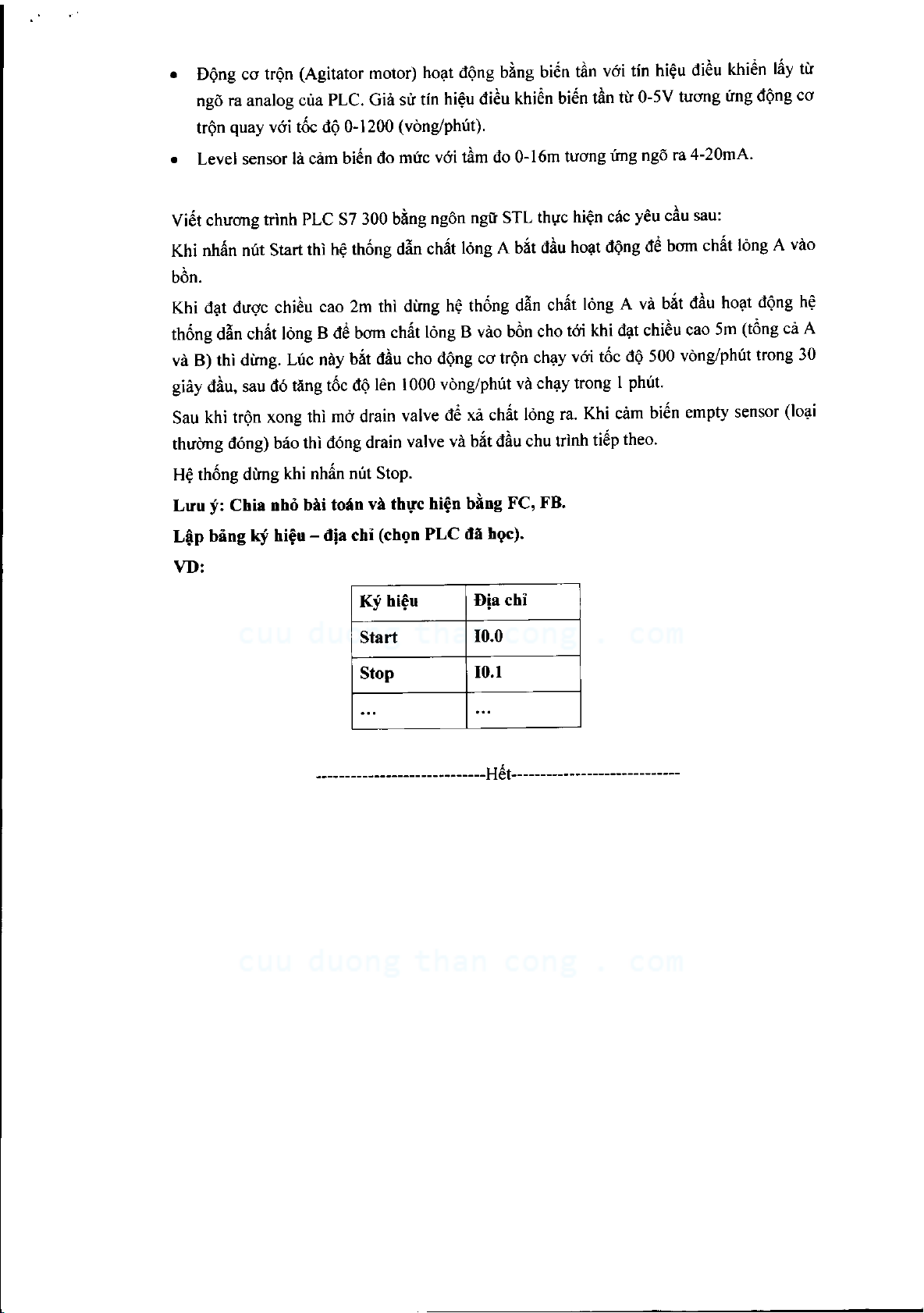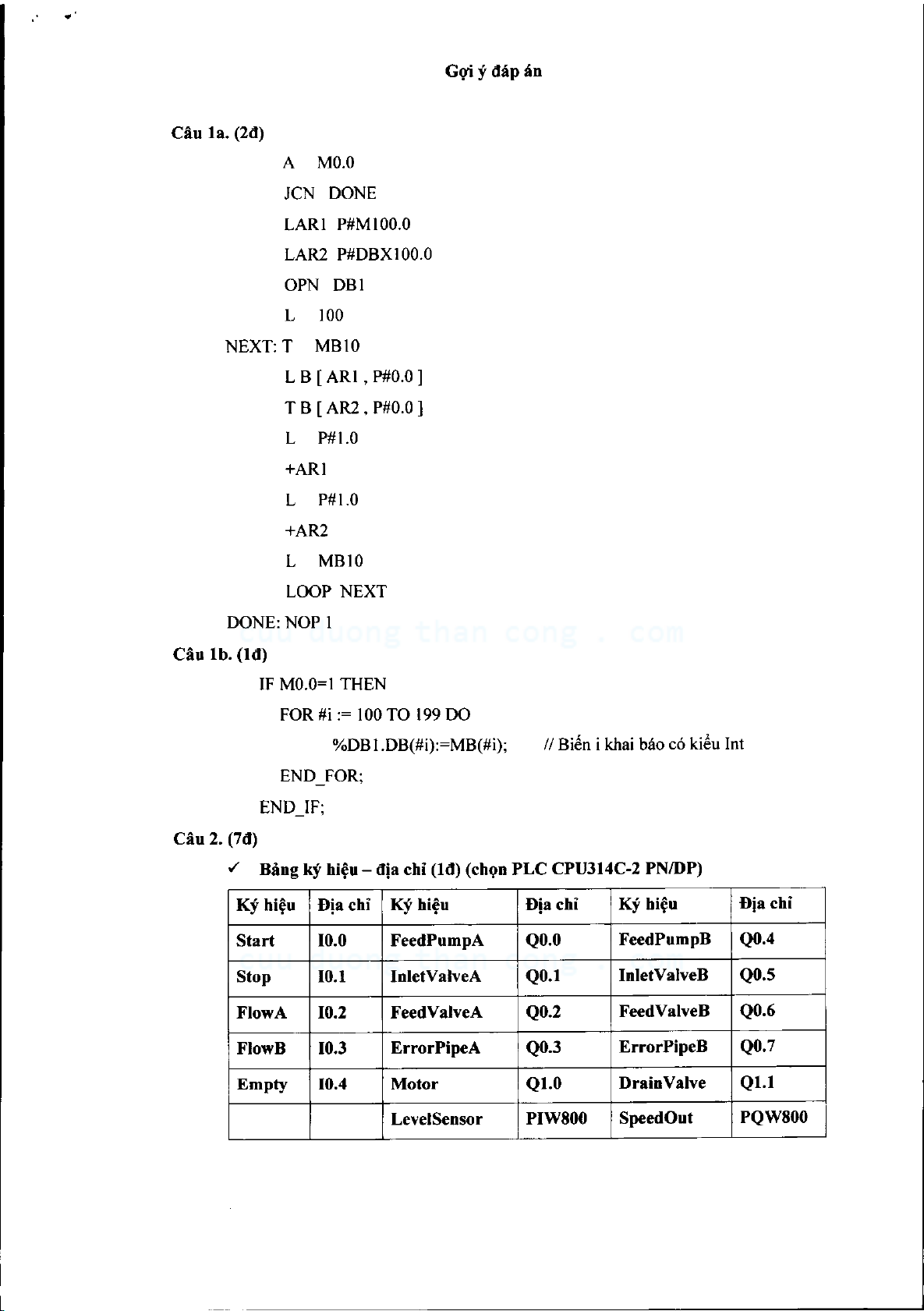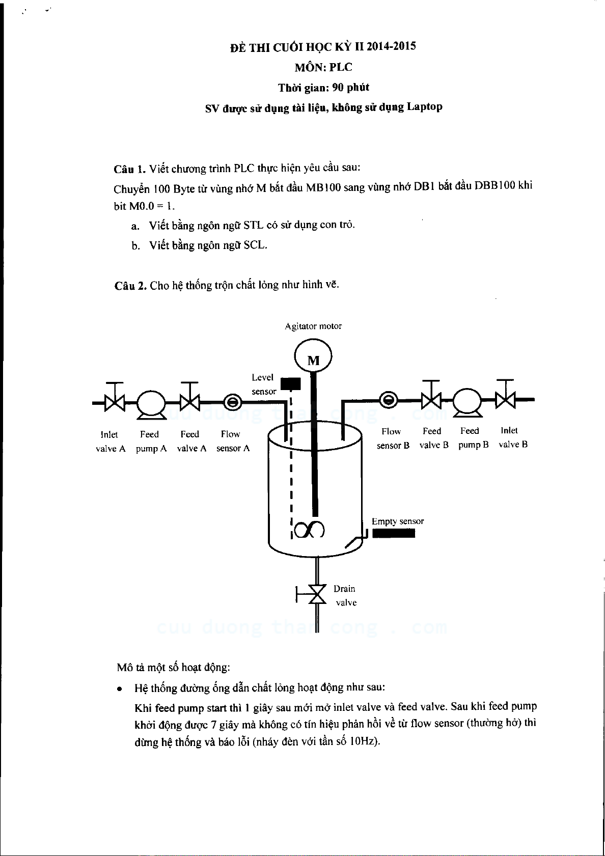 Đề thi cuối học kỳ II năm học 2014 - 2015 môn PLC