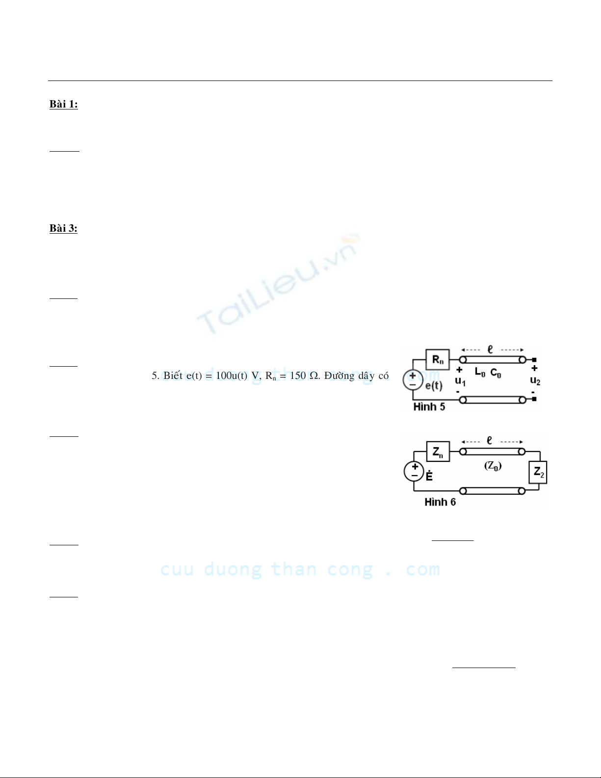 nguoàn xung nhö Hình 5. Bieát e(t) = 100u(t) V, Rn = 150 Ω. Ñöôøng daây coù