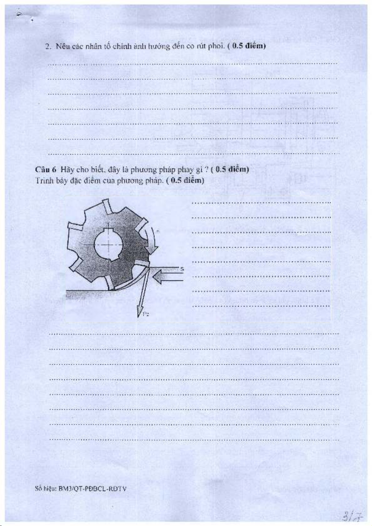 Cau 6 Hay cho biet, day la phuang phap phay gi ? ( 0.5 diem)