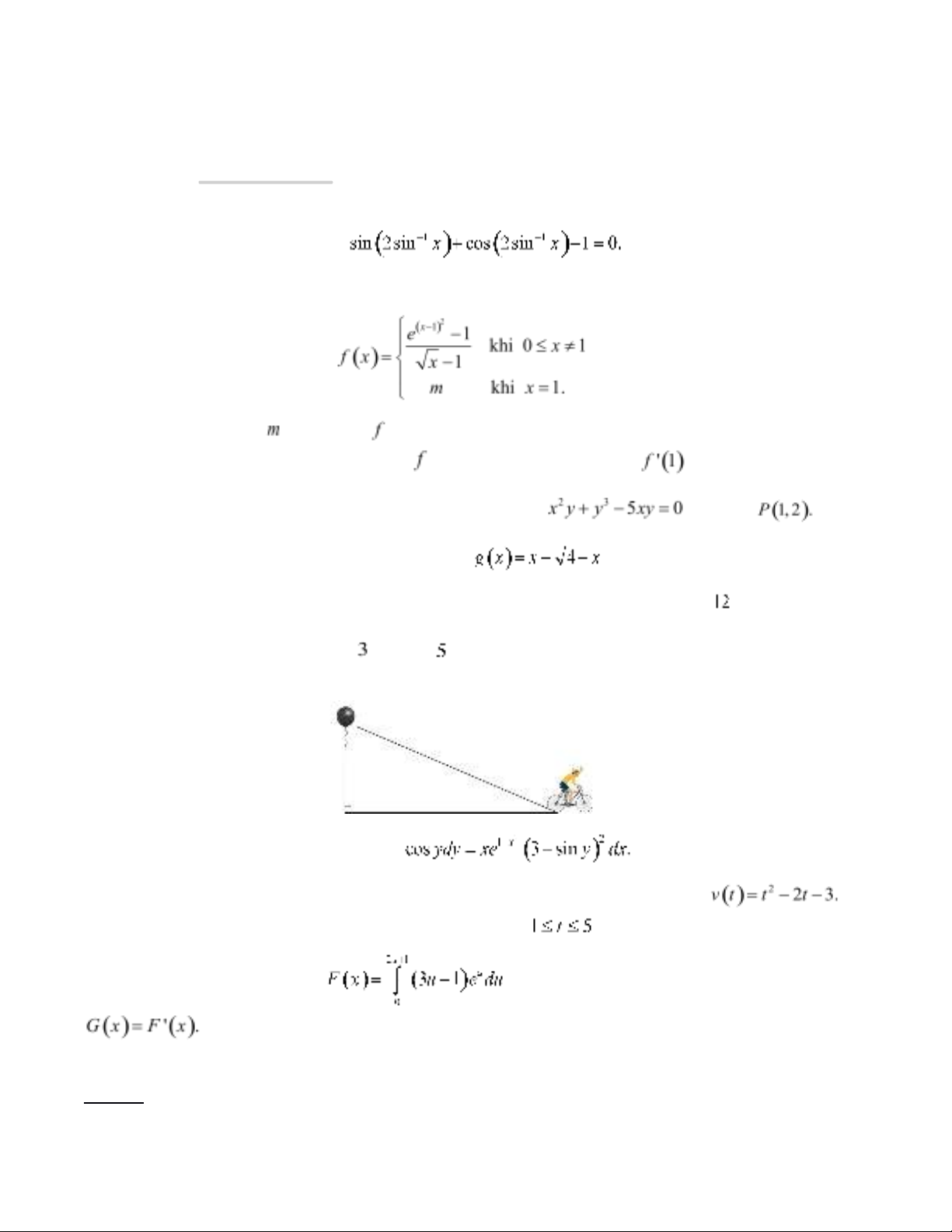 Câu 5 (1 điểm) Một ngườiđang đi xe đạp trên đường thẳng với tốcđộ không đổift/s và thảmột