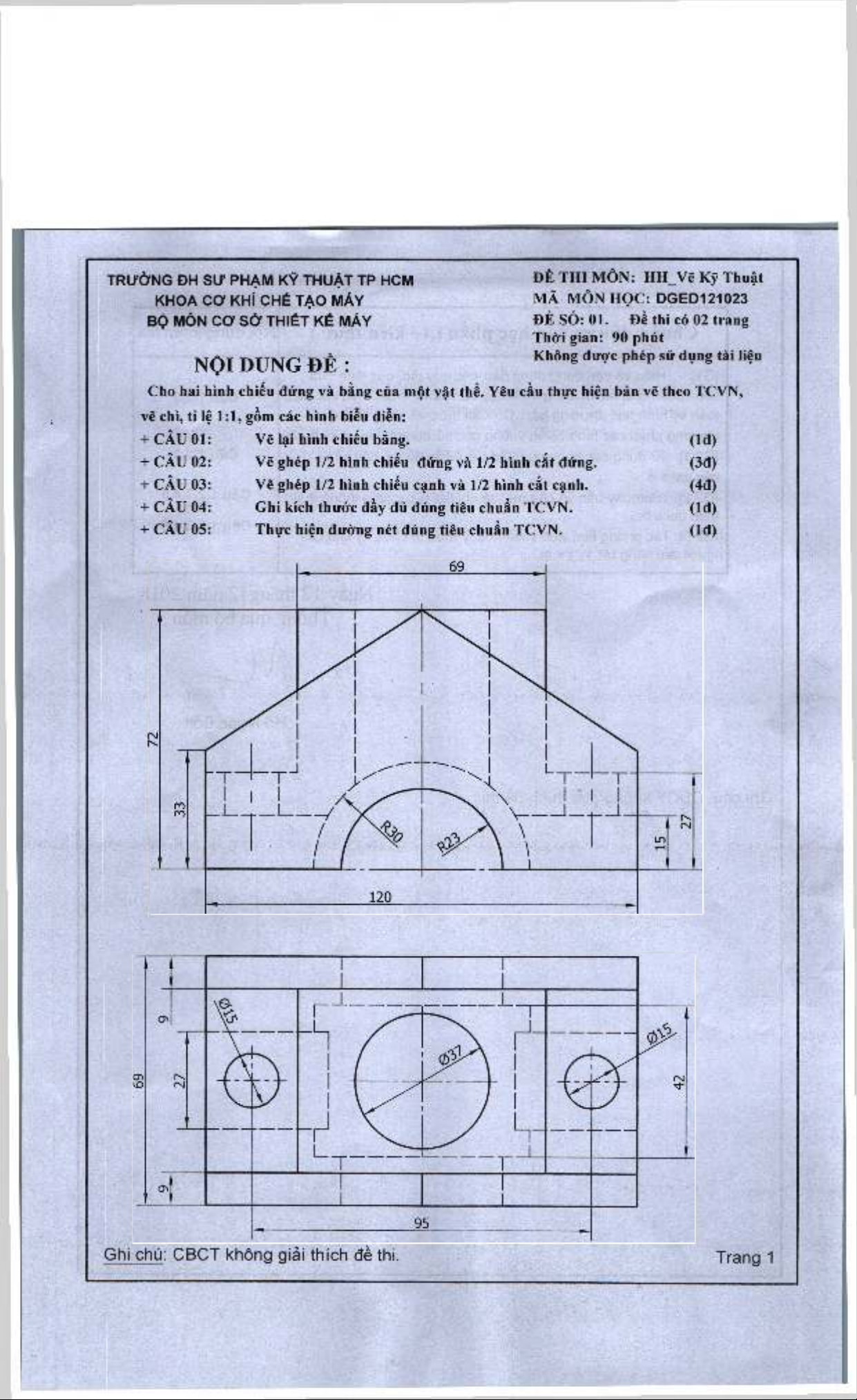 ĐÊ THI MÔN: HH^Vẽ Kỹ Thuật