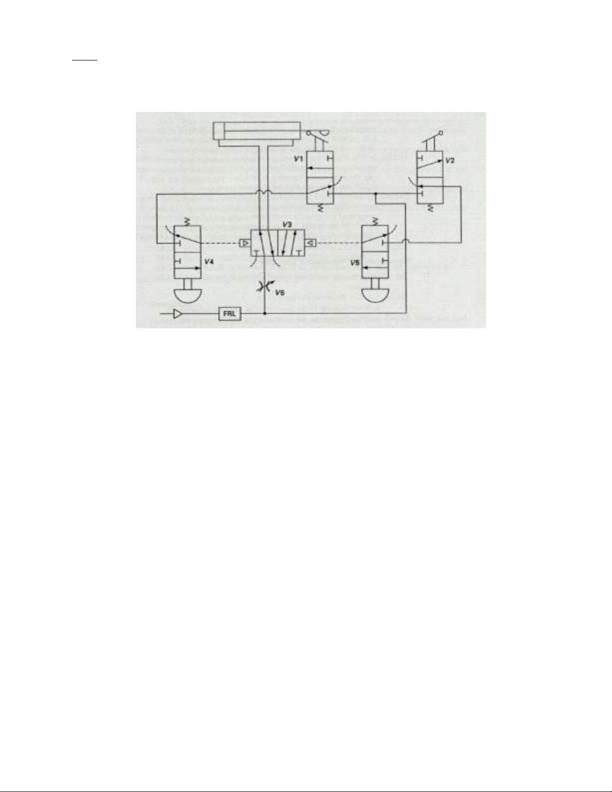 b. Hãy cho biết điều gì xảy ra với xy lanh khi ấn van V5 ?