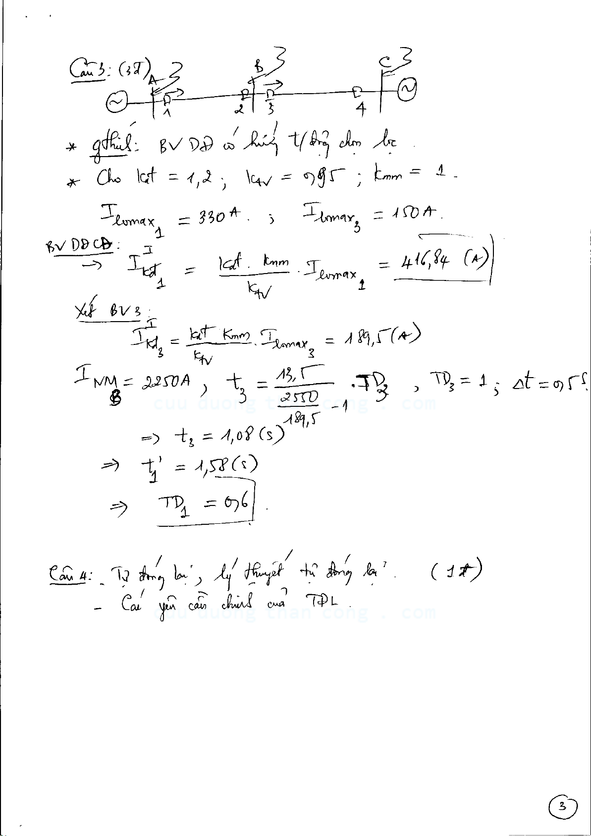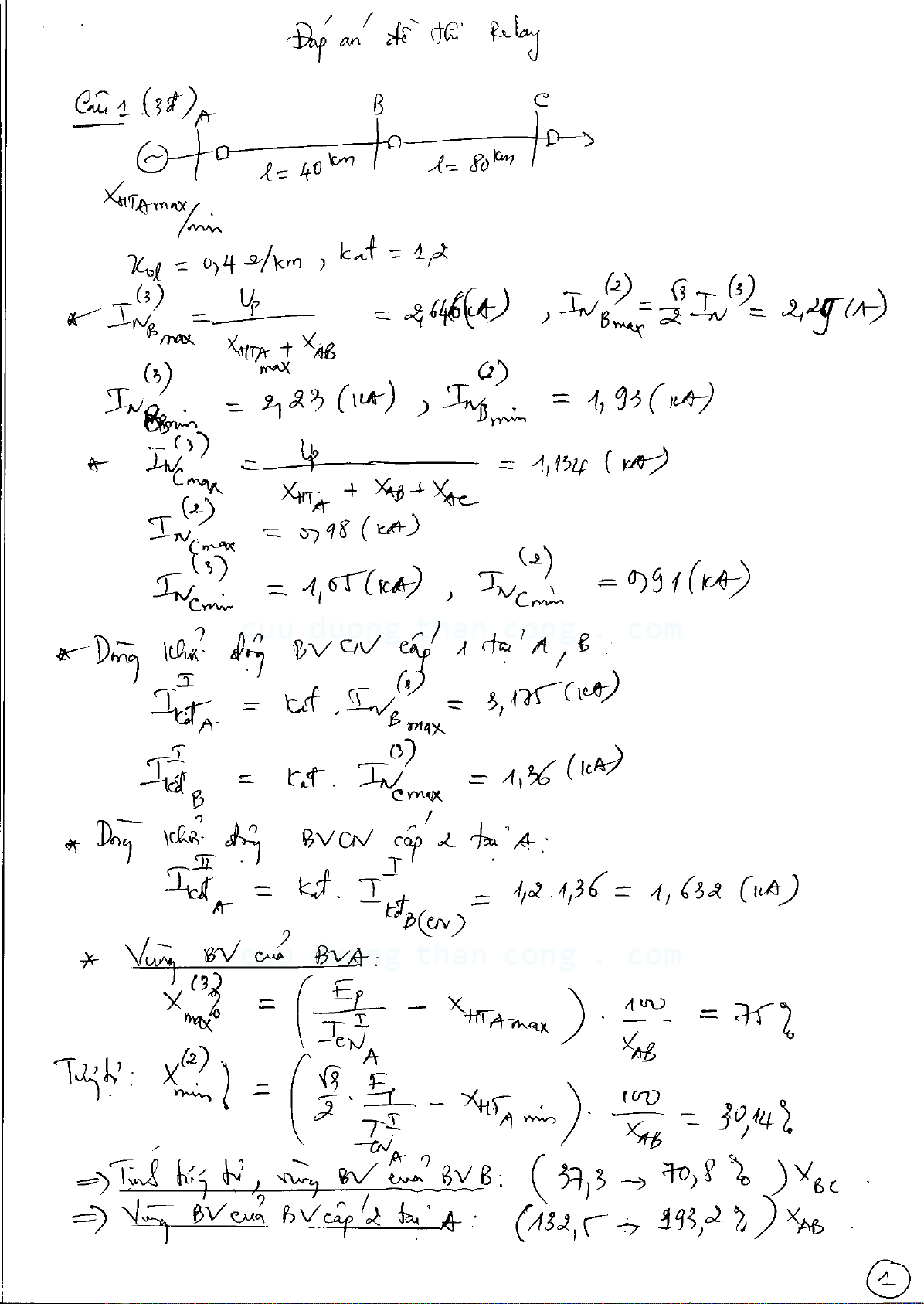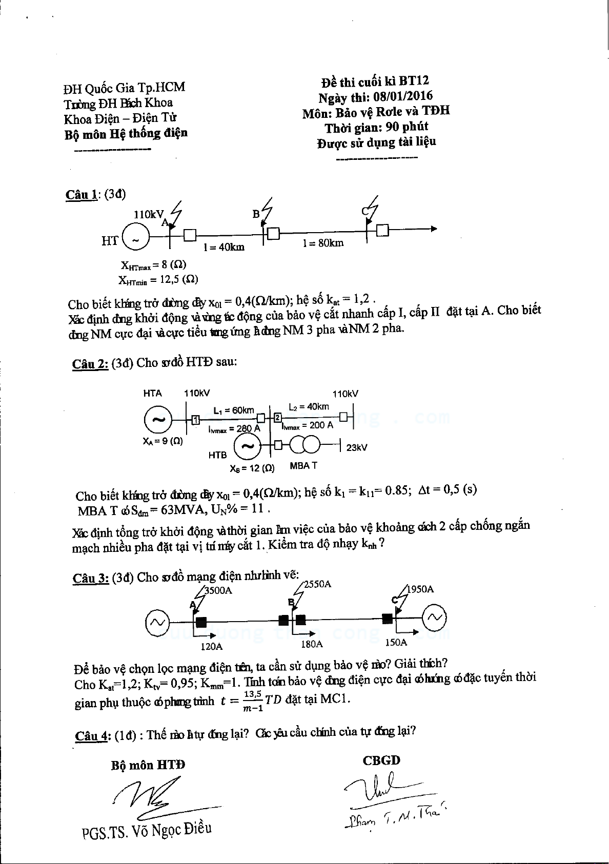 Đề thi cuối kỳ năm học 2015 - 2016 môn Bảo vệ Rơle trong hệ thống điện - Lớp BT12
