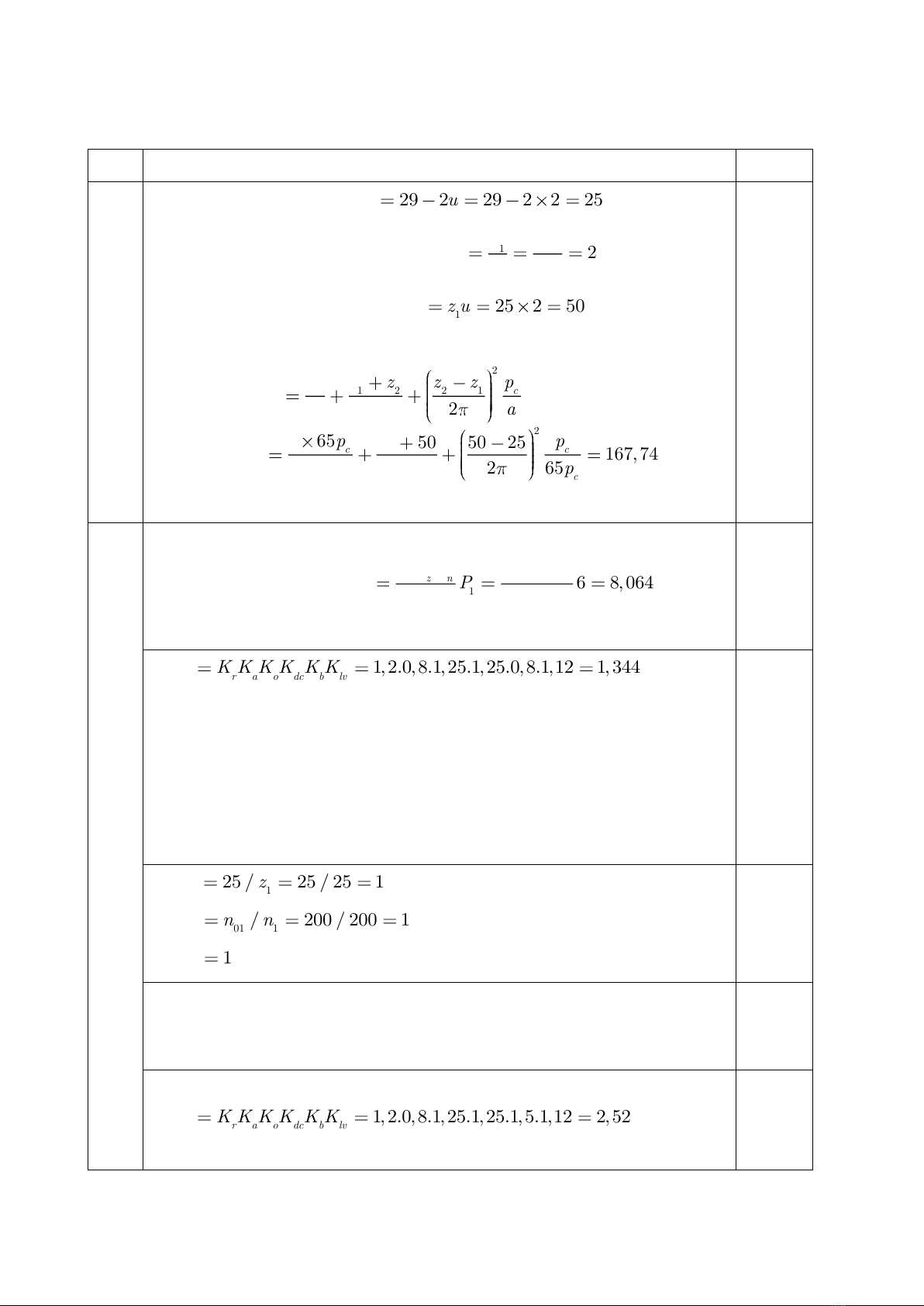 - c = 1 (bánh dẫn ăn khớp với 1 bánh bị dẫn).