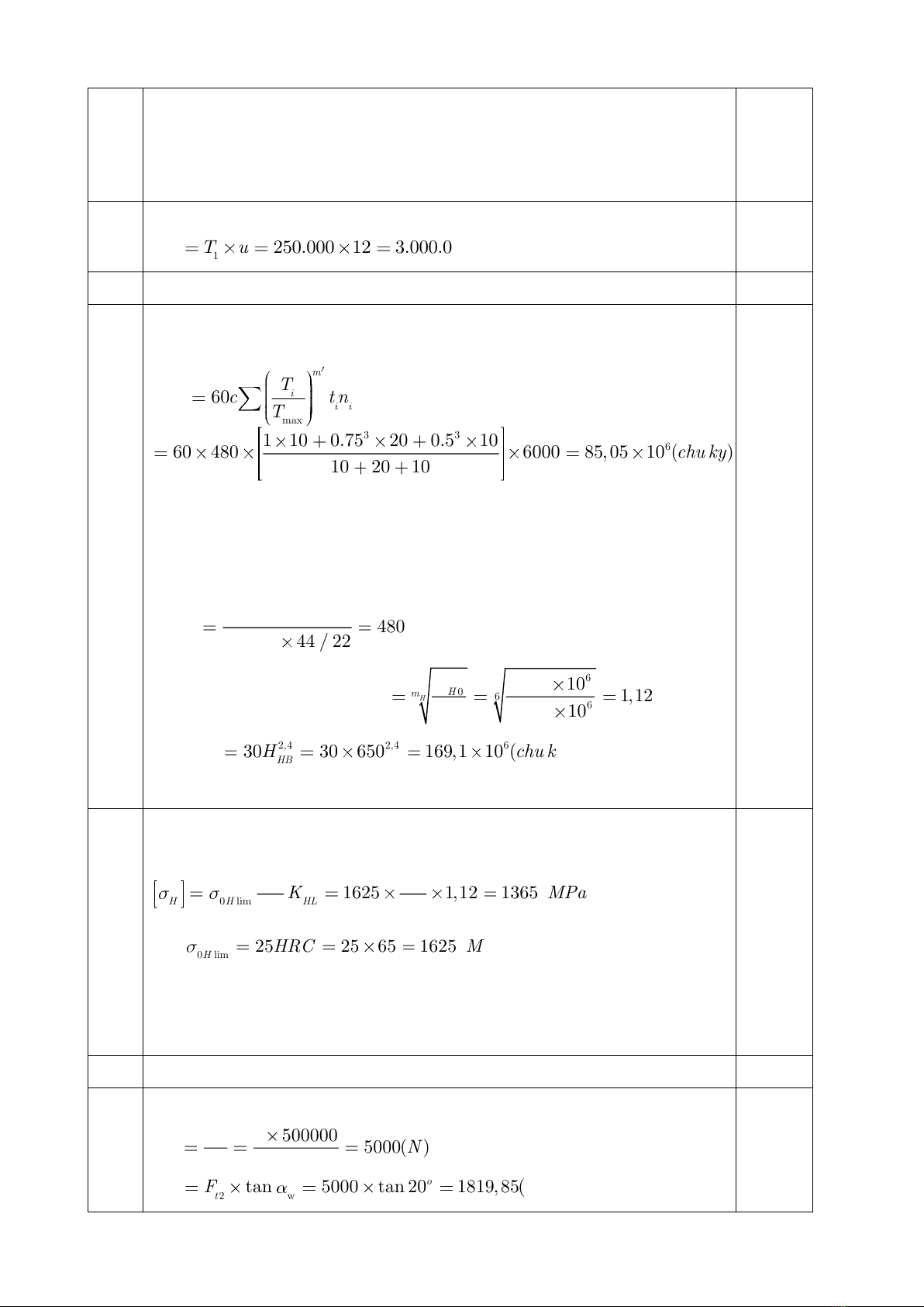 65HRC. Số vòng quay bánh răng số 5 (tính từ câu 2). Bộ truyền làm việc