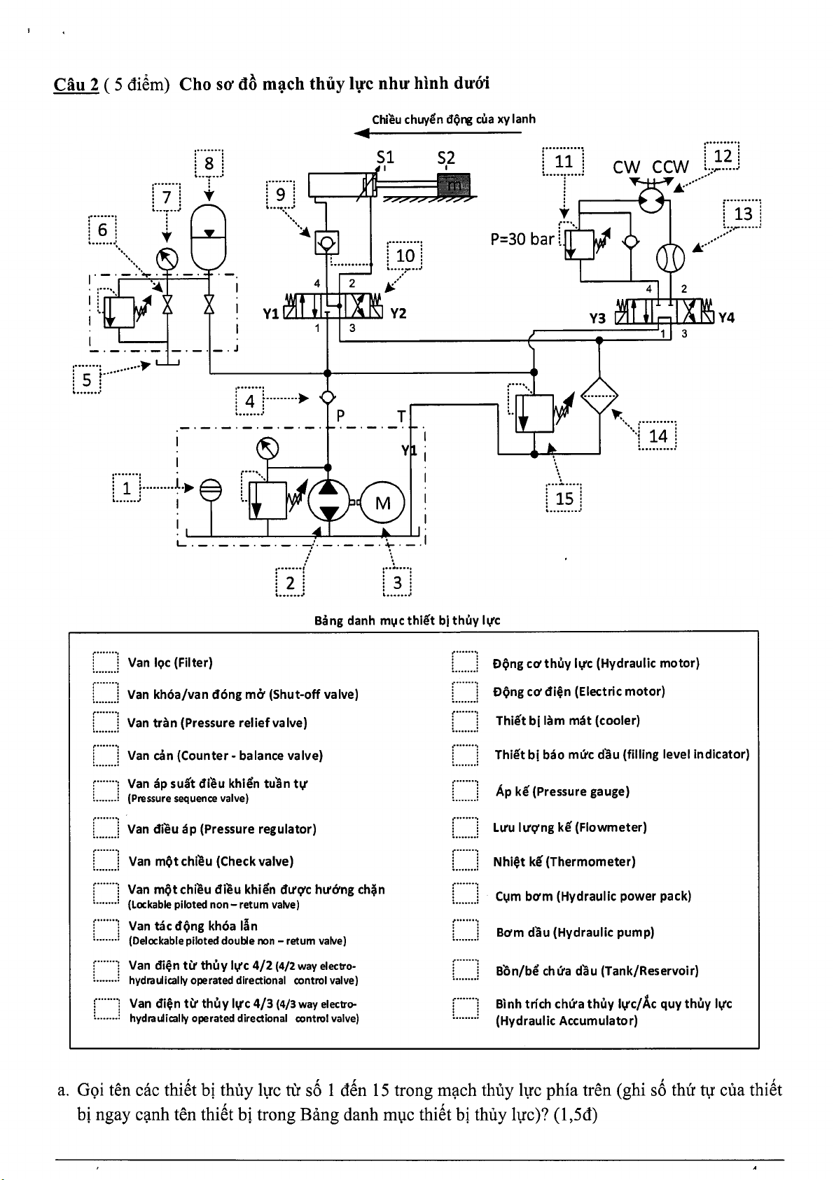 a. Goi ten cac thiet bi thuy lire tir so 1 den 15 trong mach thuy lyc phia tren (ghi so thu tu cua thiet