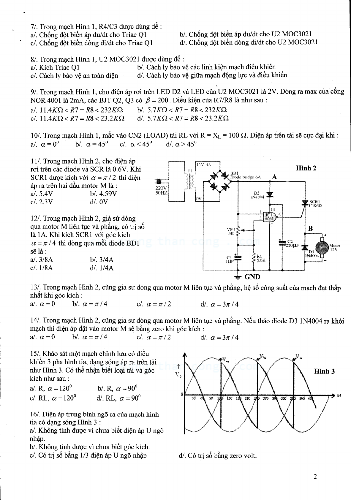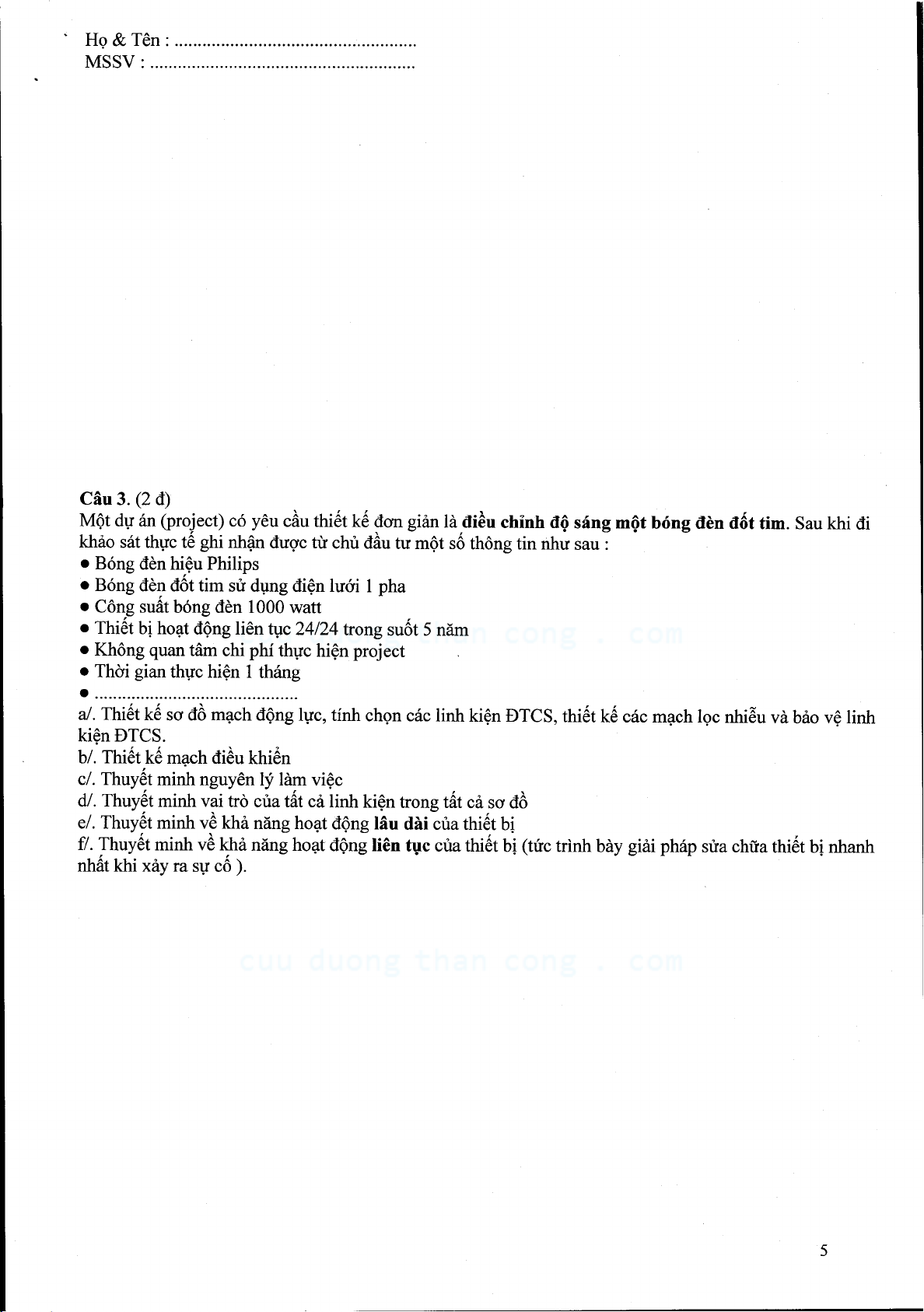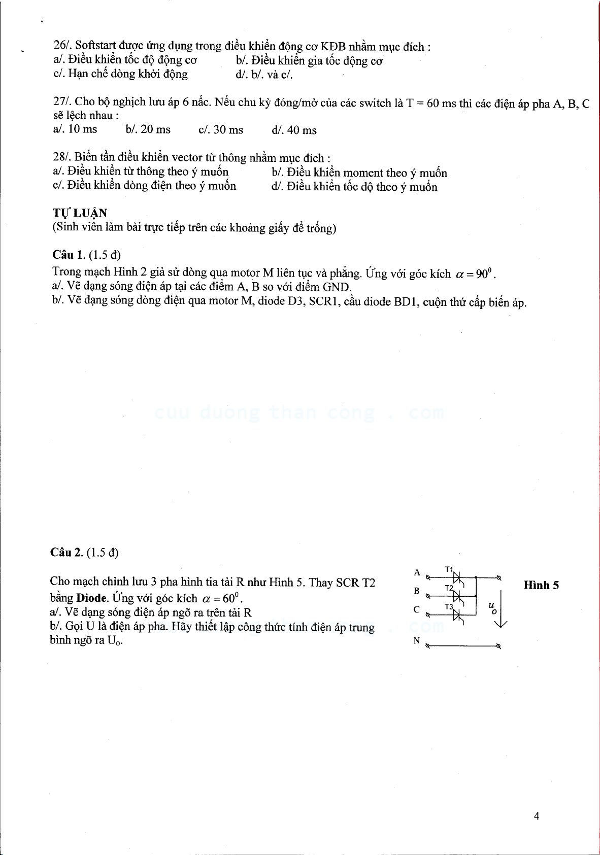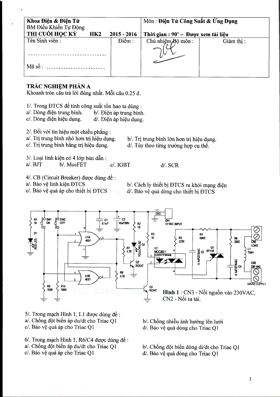 Đề thi cuối học kỳ 2 năm học 2015 - 2016 môn Điện tử công suất
