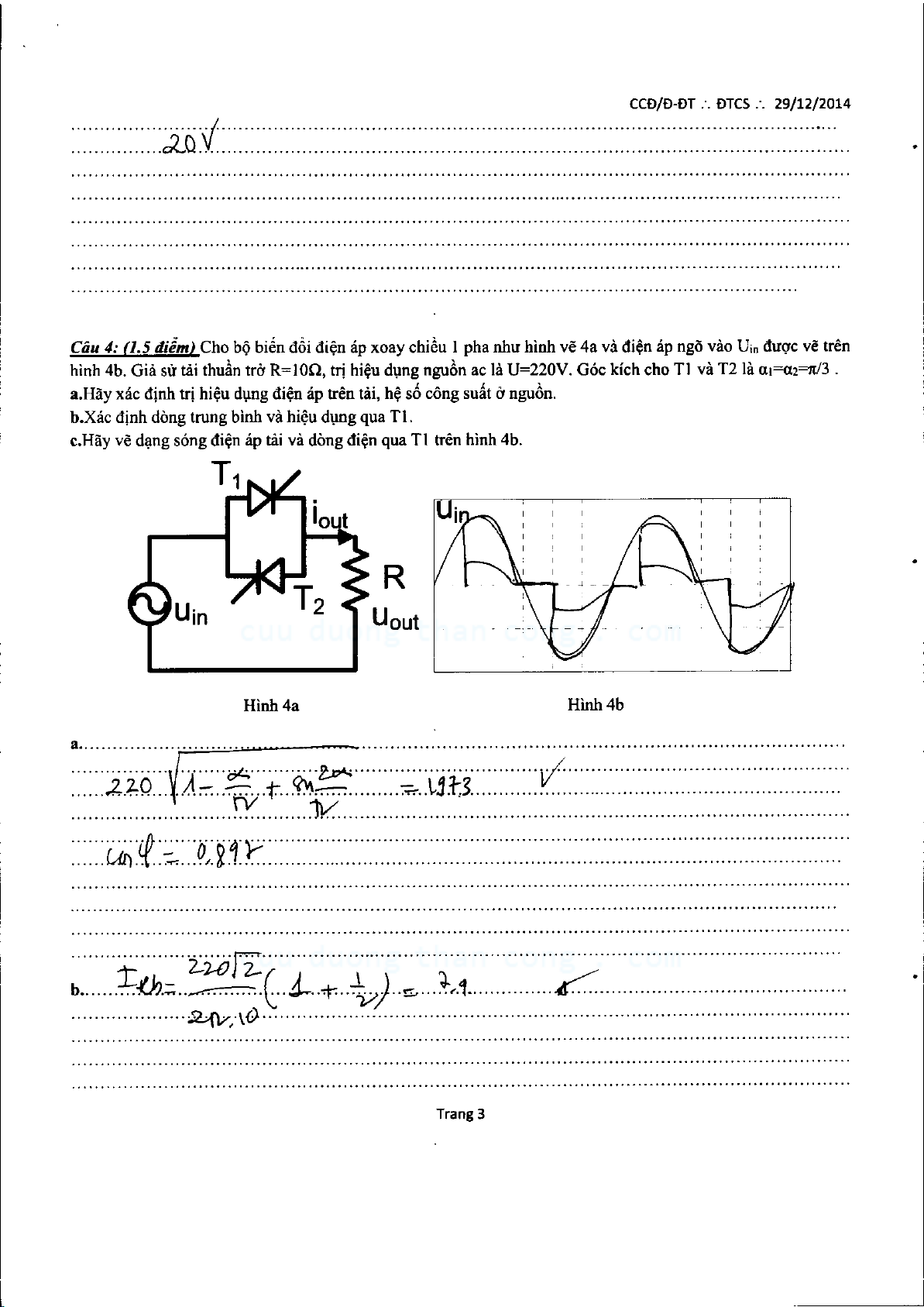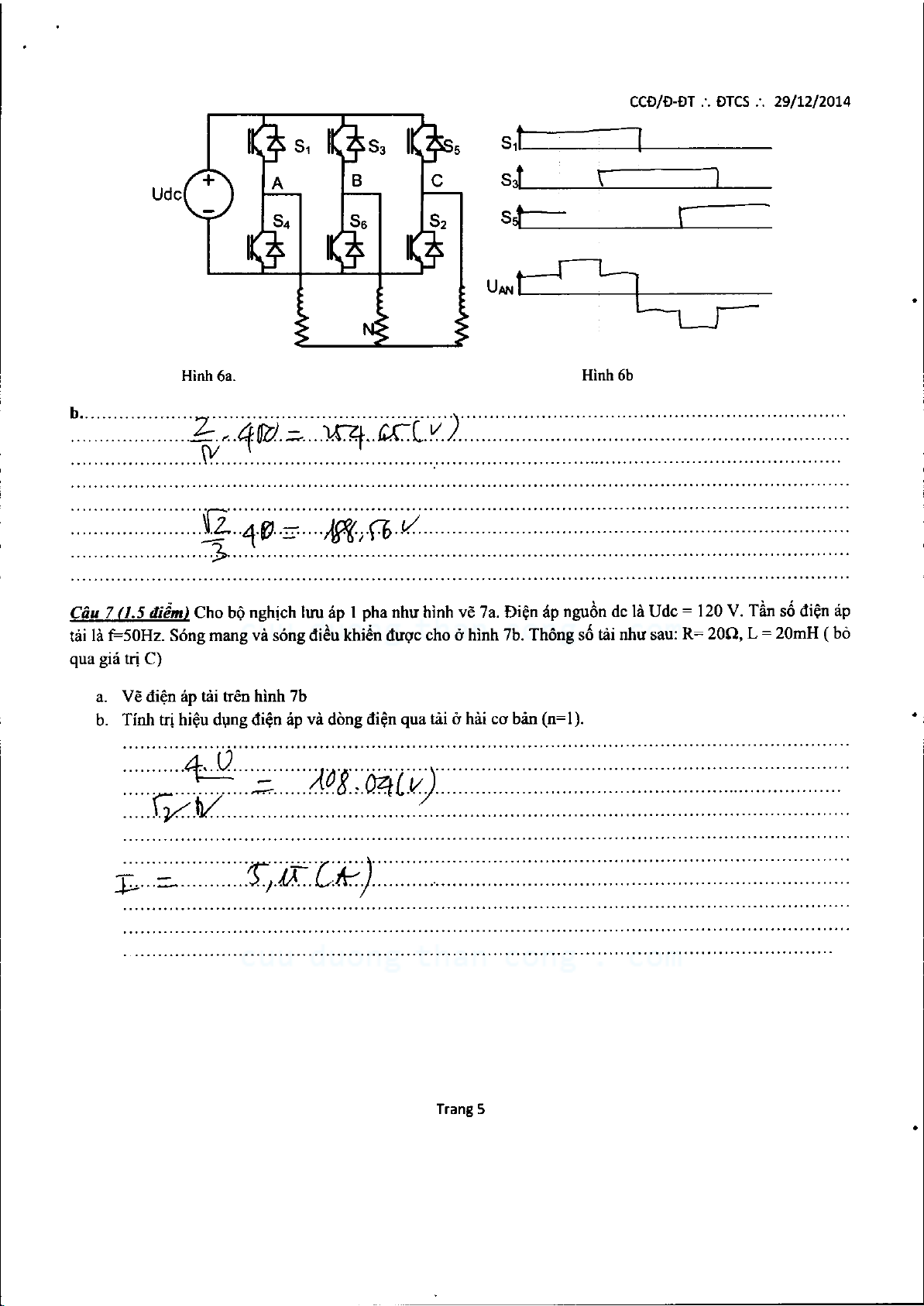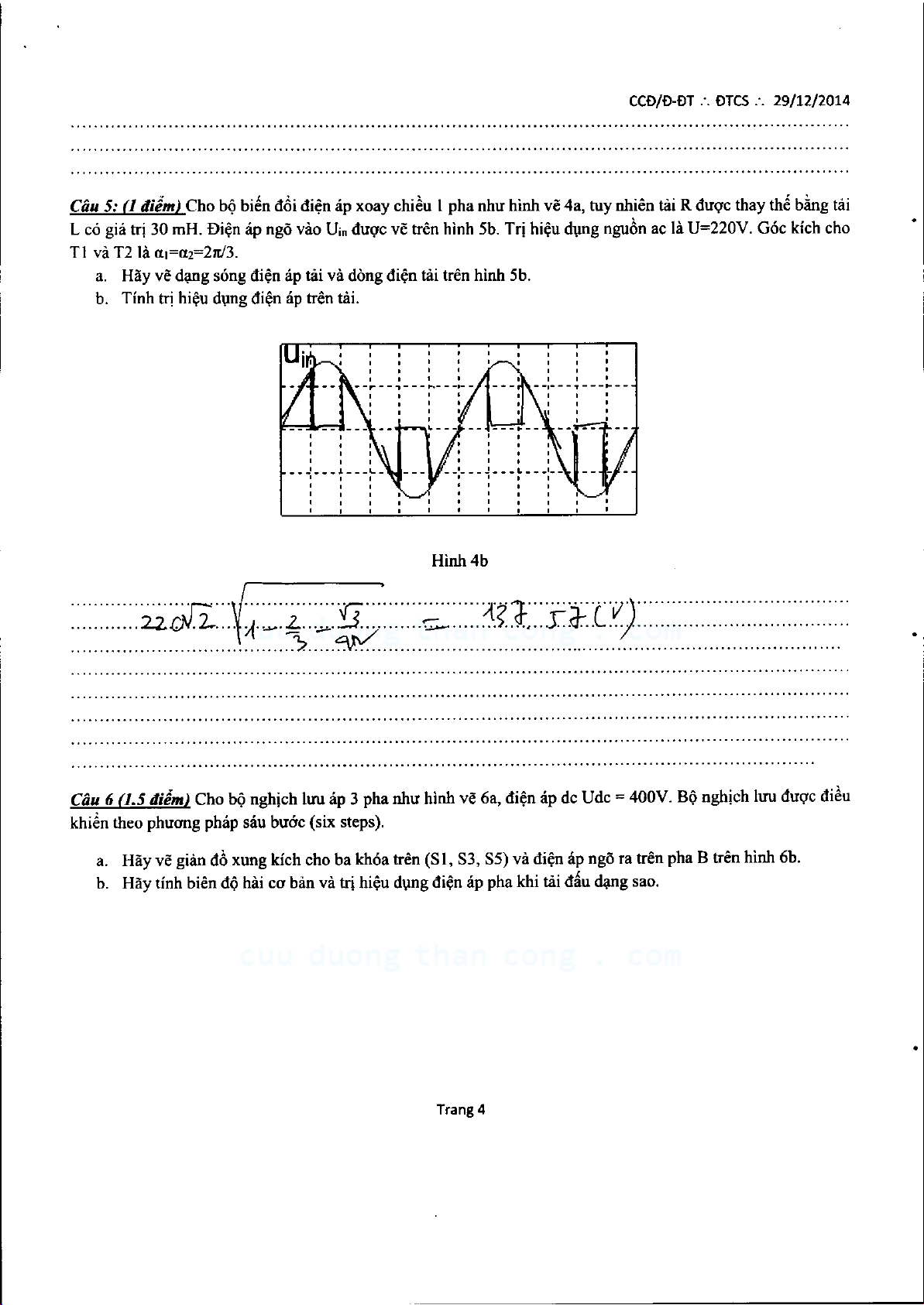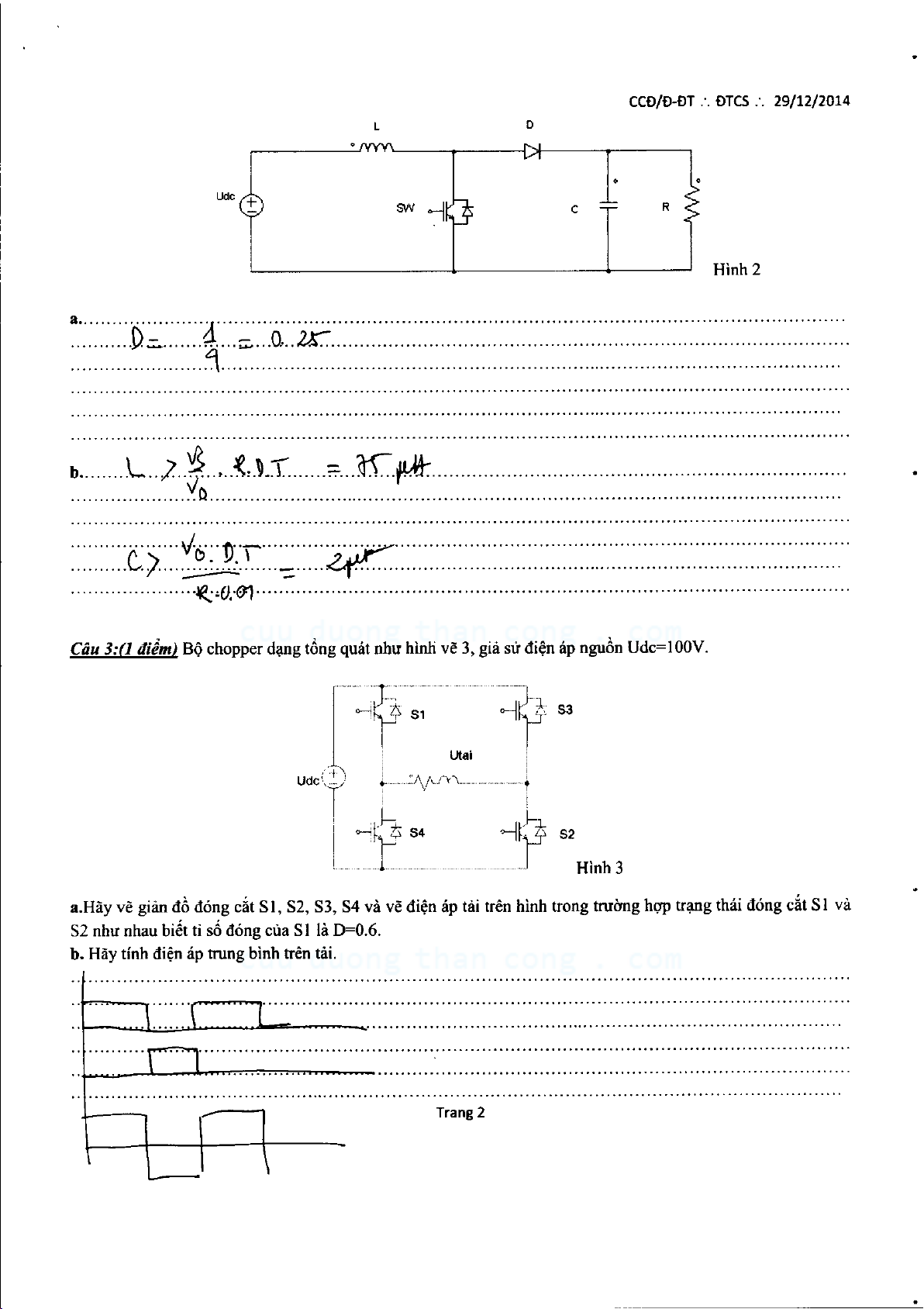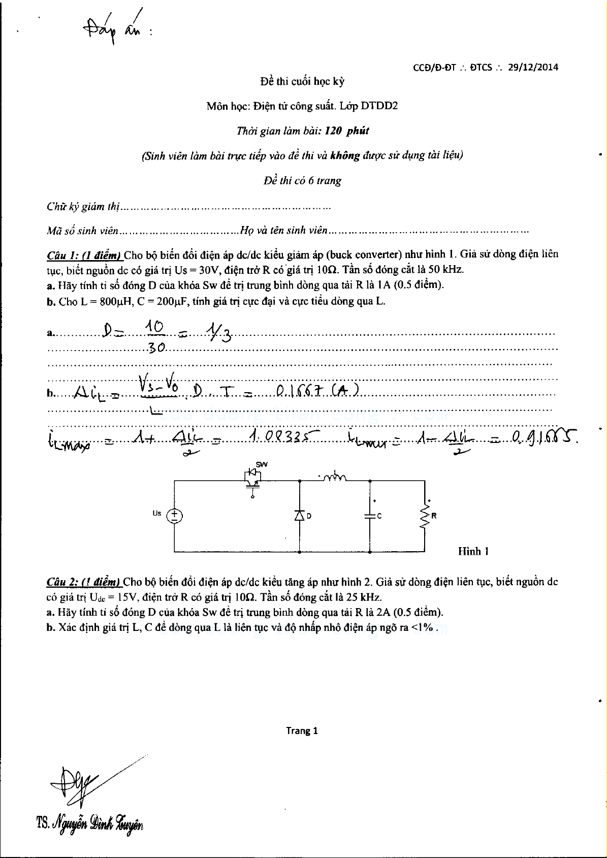 Đề thi cuối học kỳ môn Điện tử công suất - Lớp DTDD2