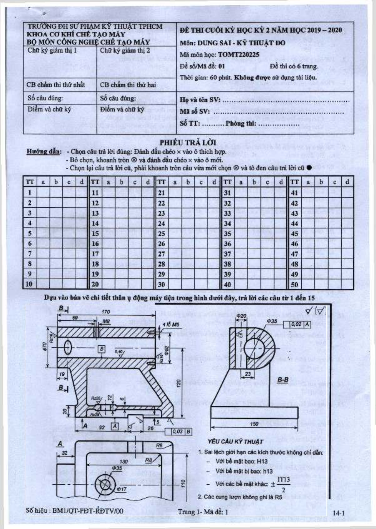 Be so/Ma de: 01 Be thi co 6 trang.