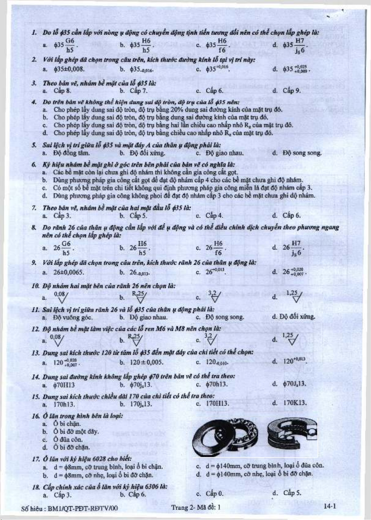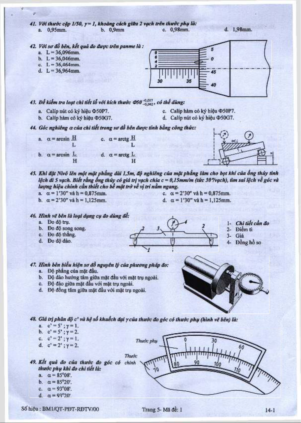 So hieu : BM1/QT-PBT-RDTV/00 Trang 5- Ma de: 1 14-1