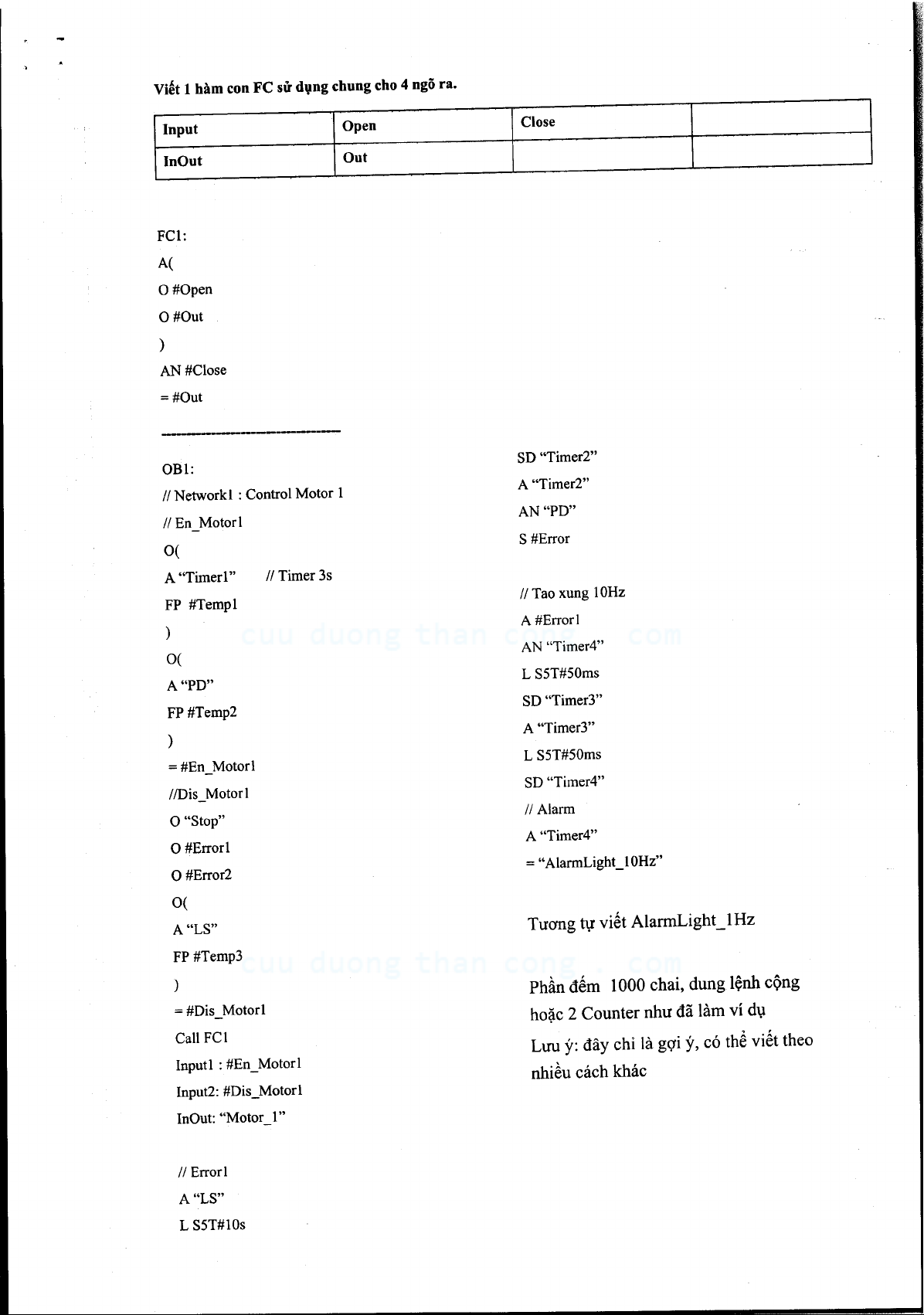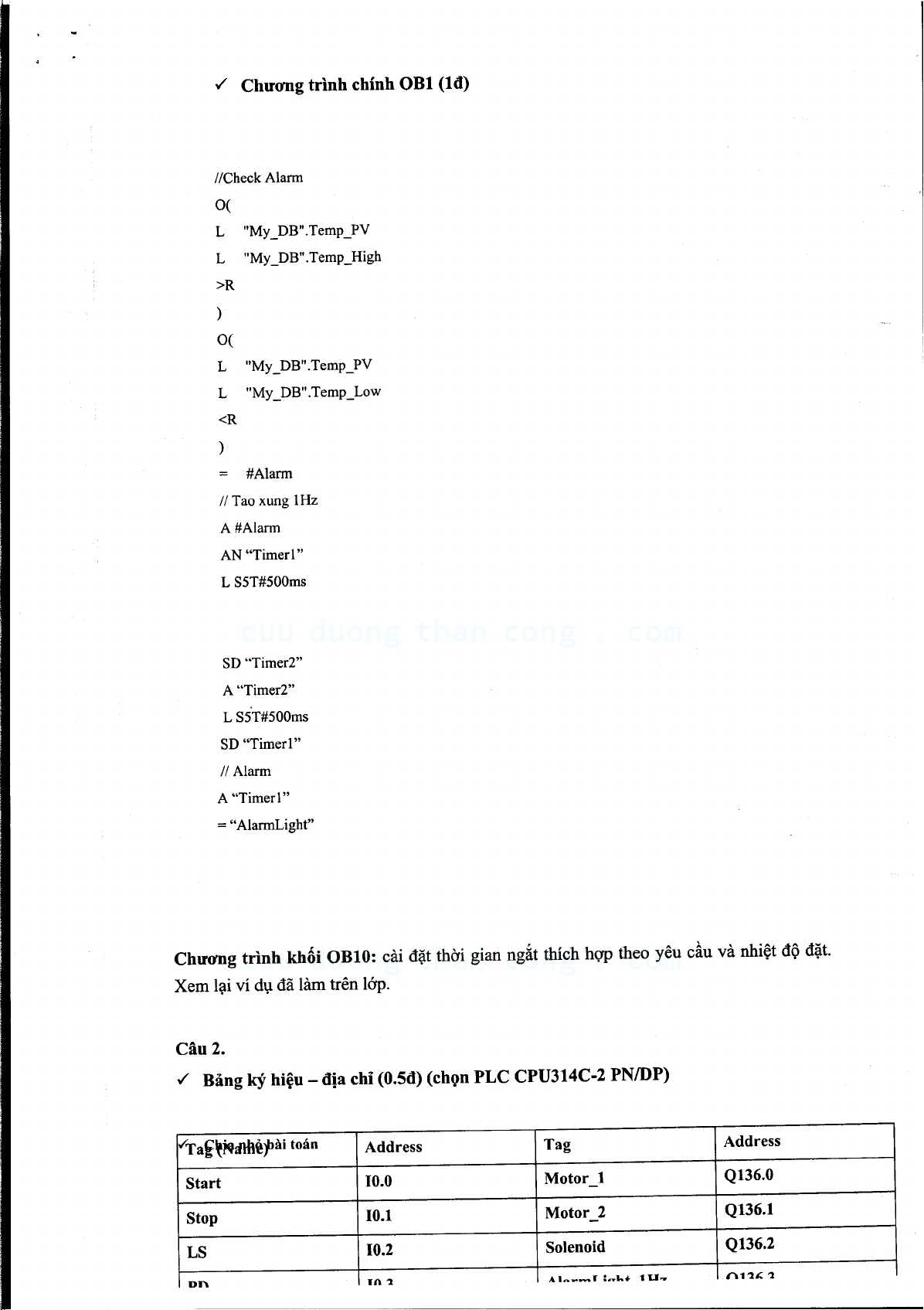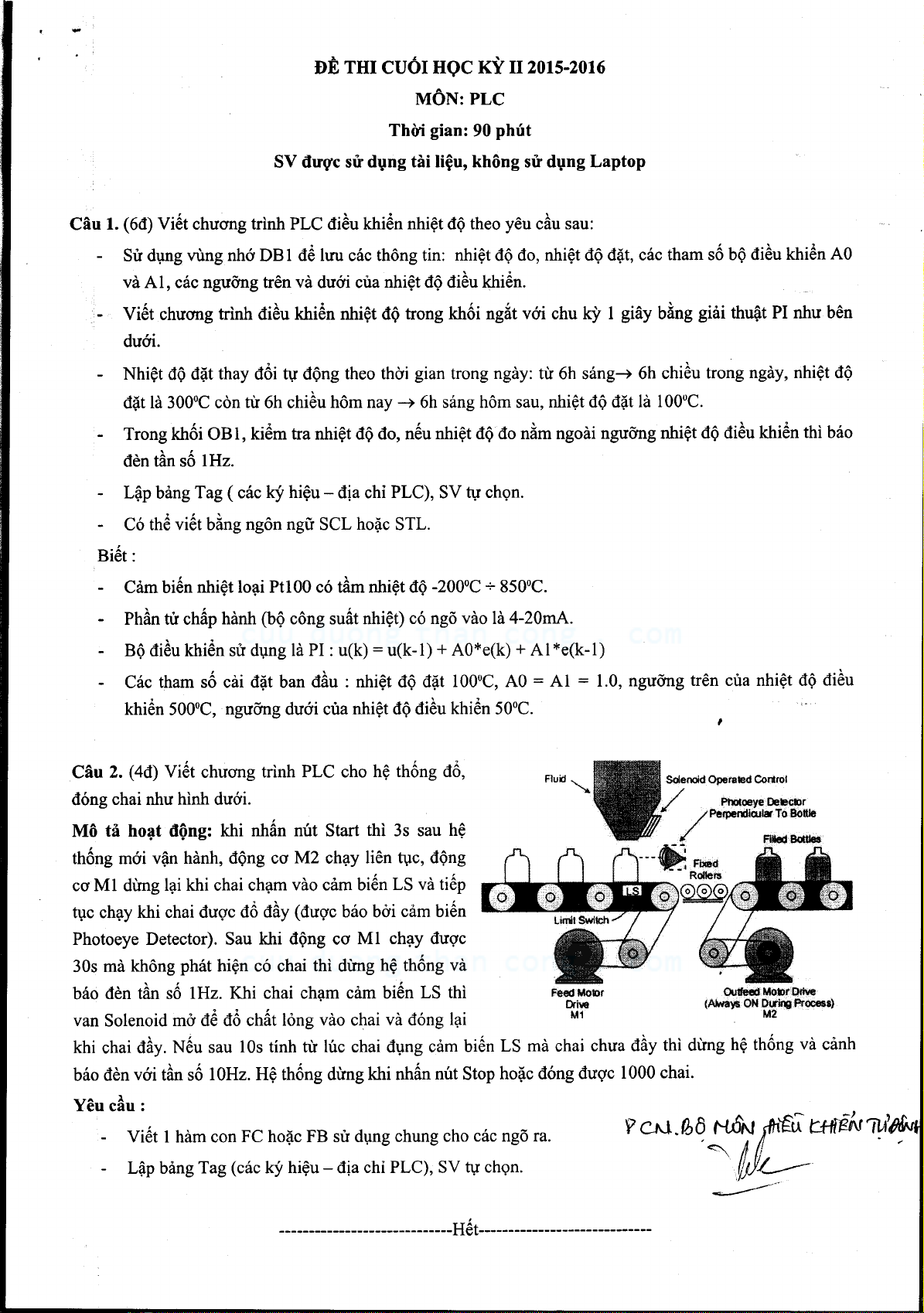 Đề thi cuối học kỳ II năm 2015-2016 môn PLC