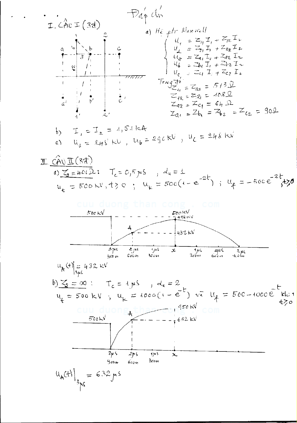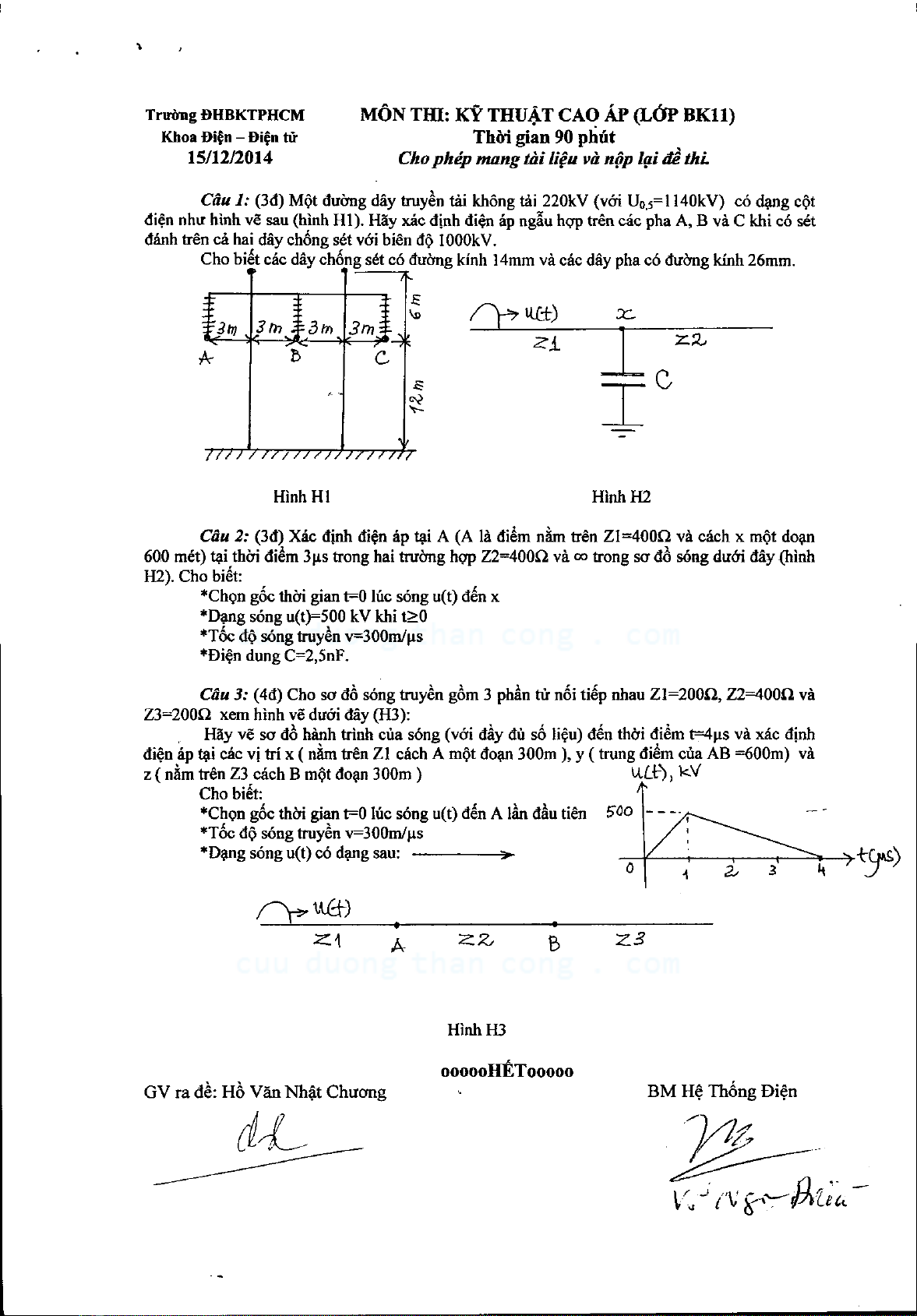 Đề thi cuối kỳ môn Kỹ thuật cao áp (Lớp BK11)