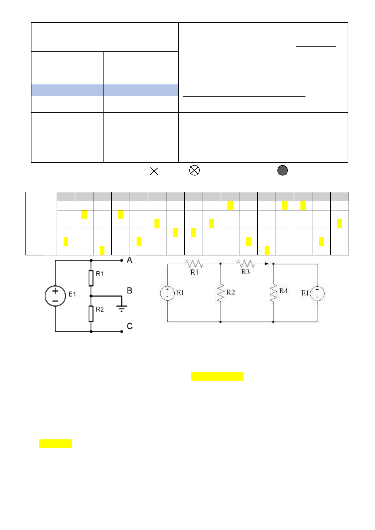 Câu 1: Cho mạch điện như hình 1. Biết E1 = 12V; Tính R1 và R2 để điện thế tại A là 3.1V.