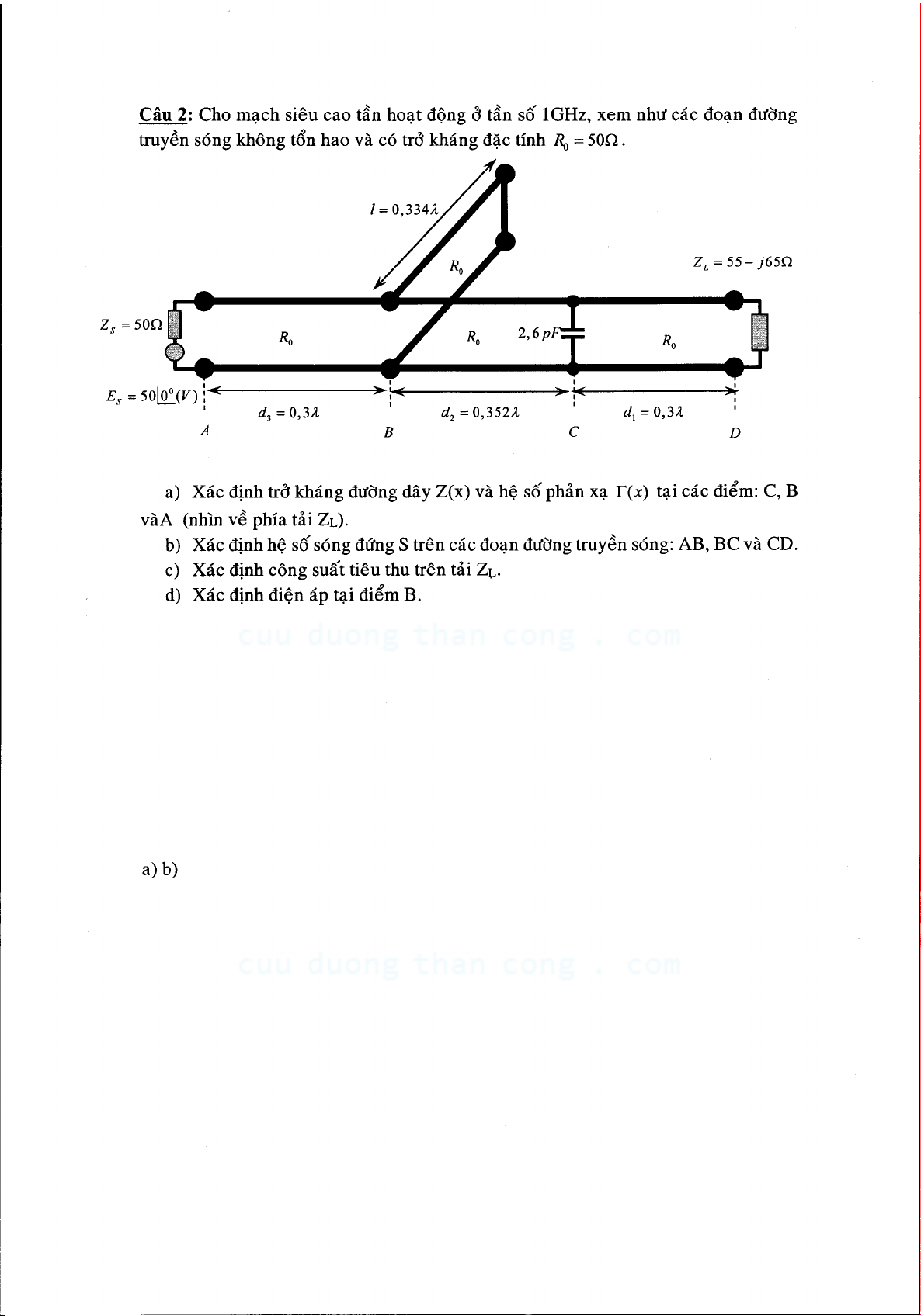 Đề thi cuối học kỳ môn Kỹ thuật siêu cao tần