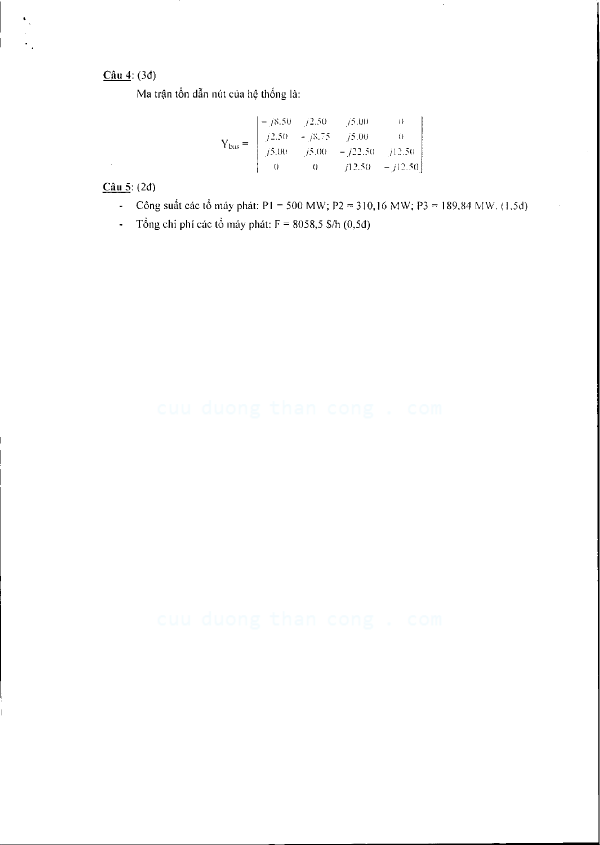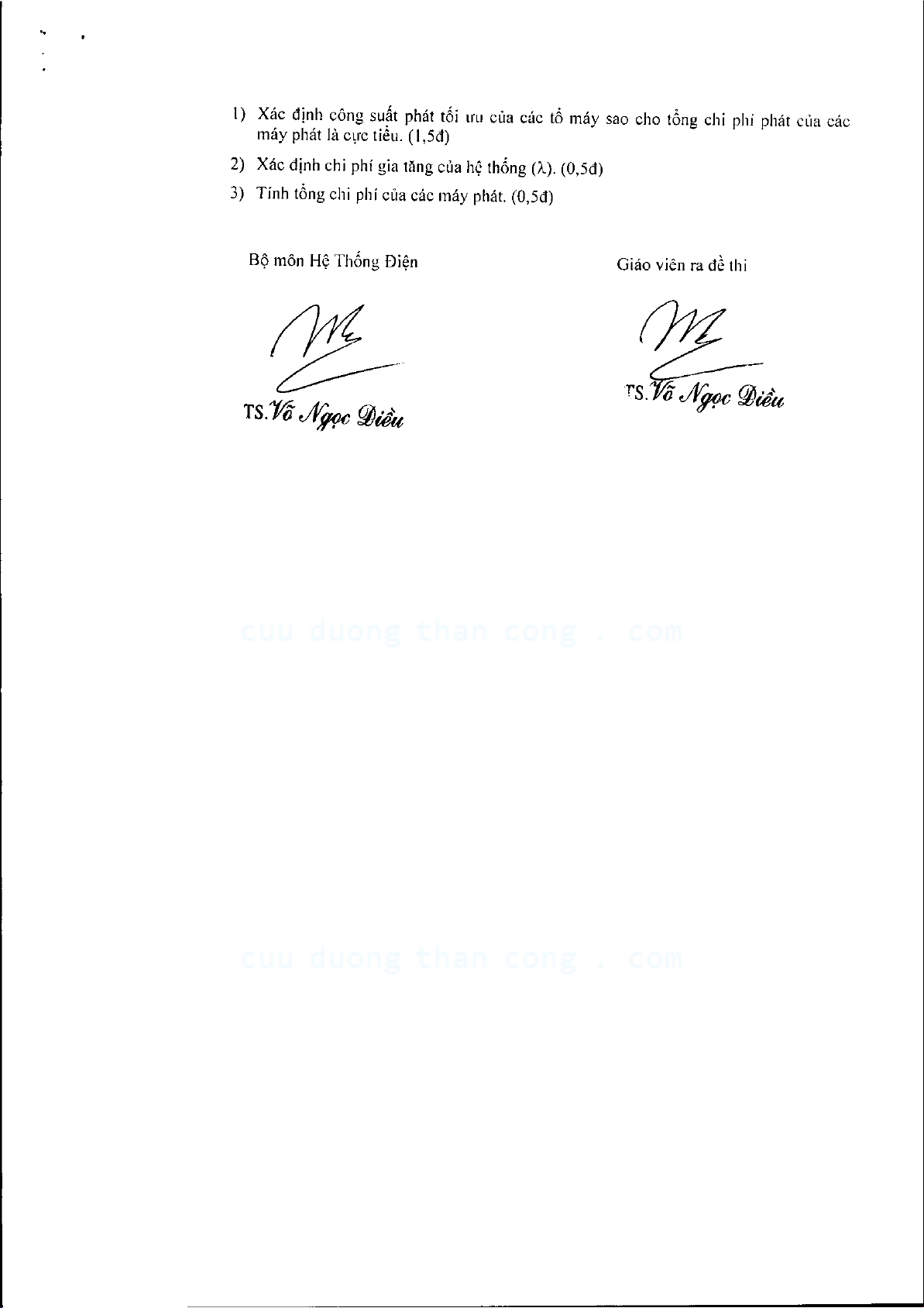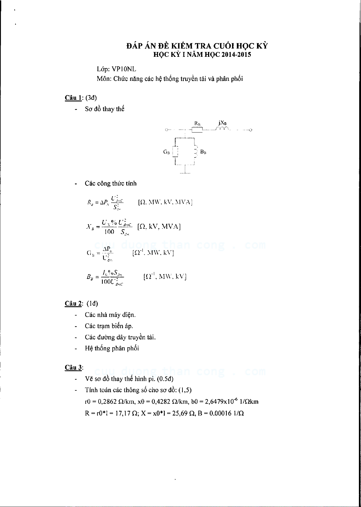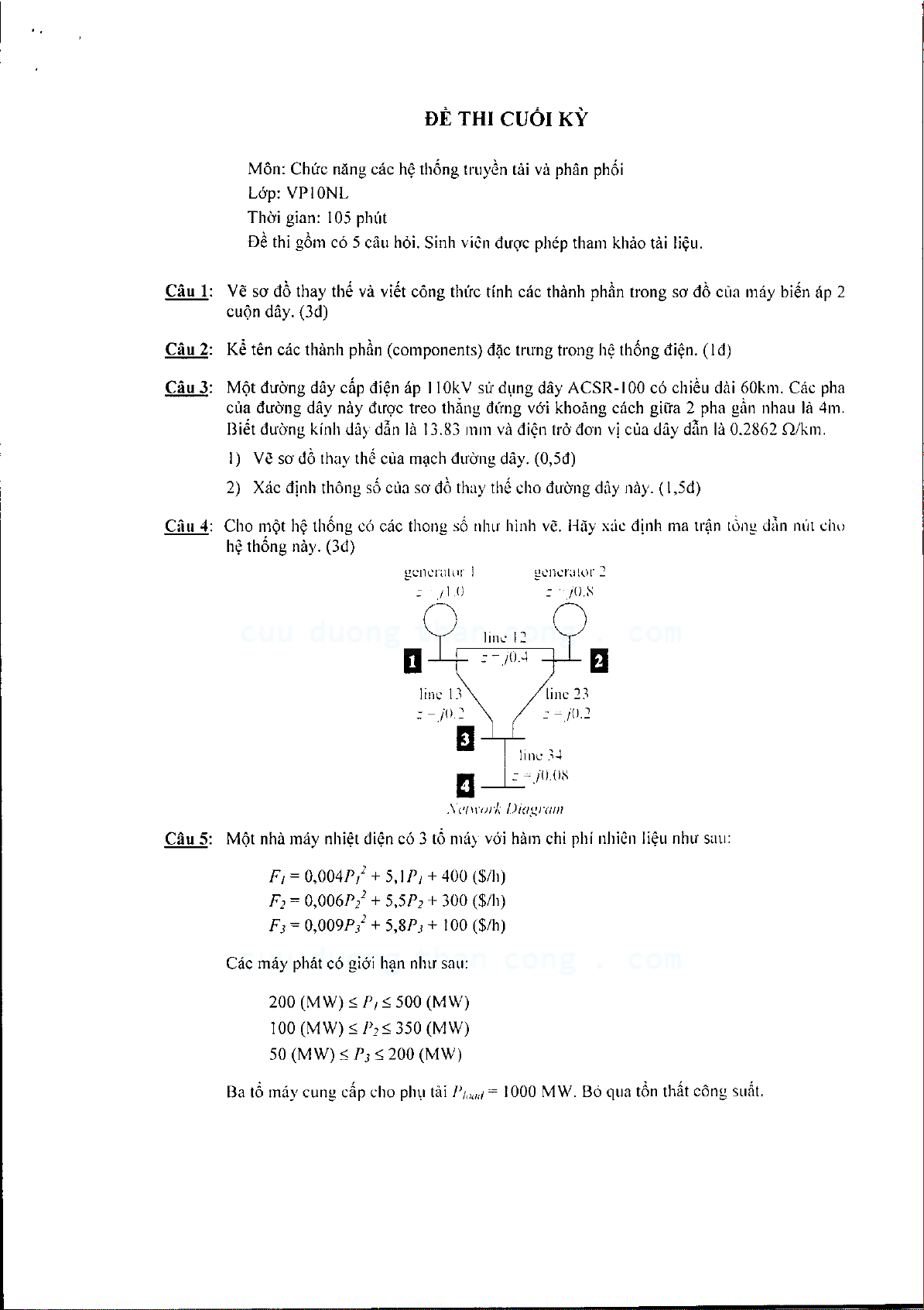Đề thi cuối kỳ môn Chức năng các hệ thống truyền tải và phân phối