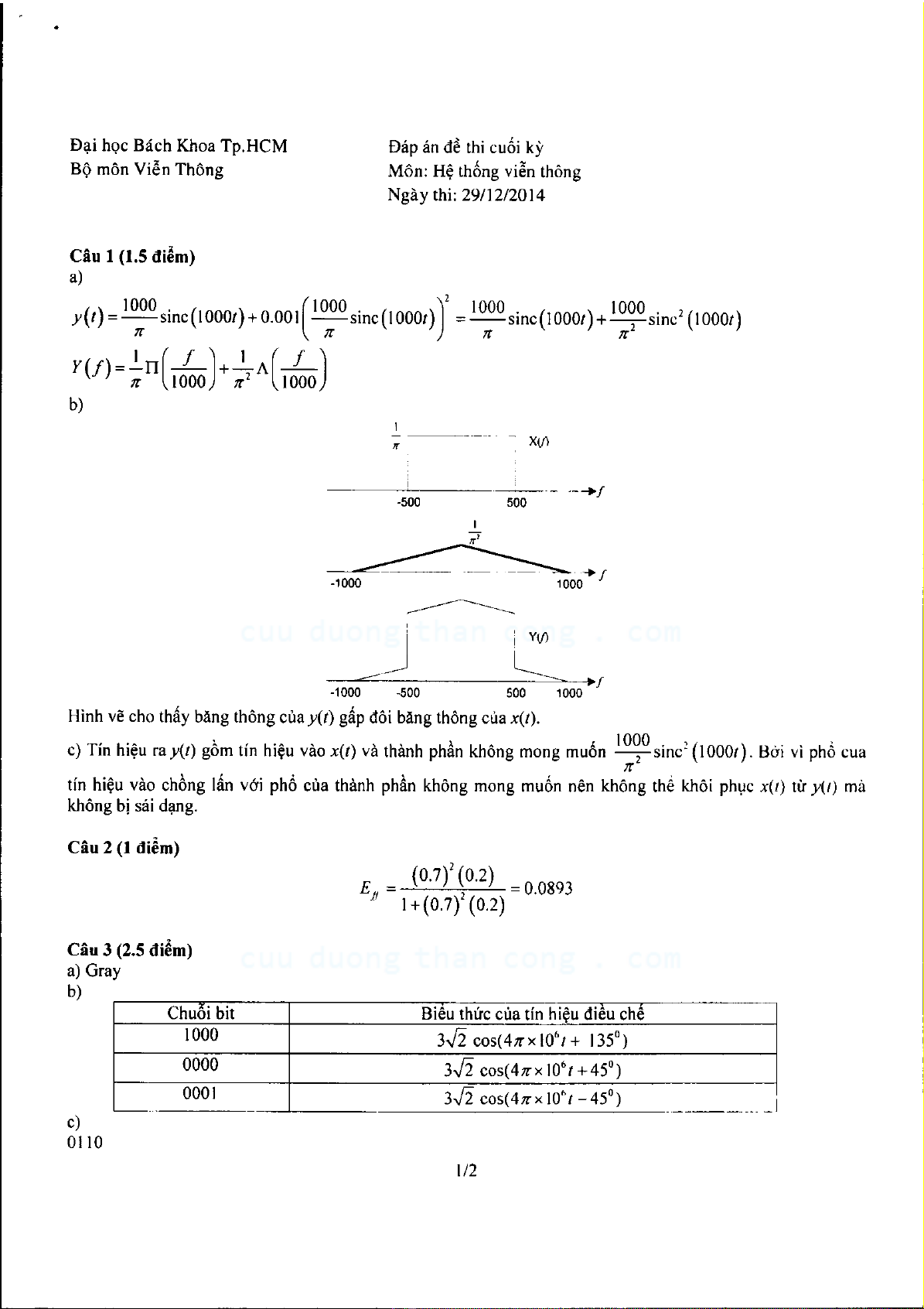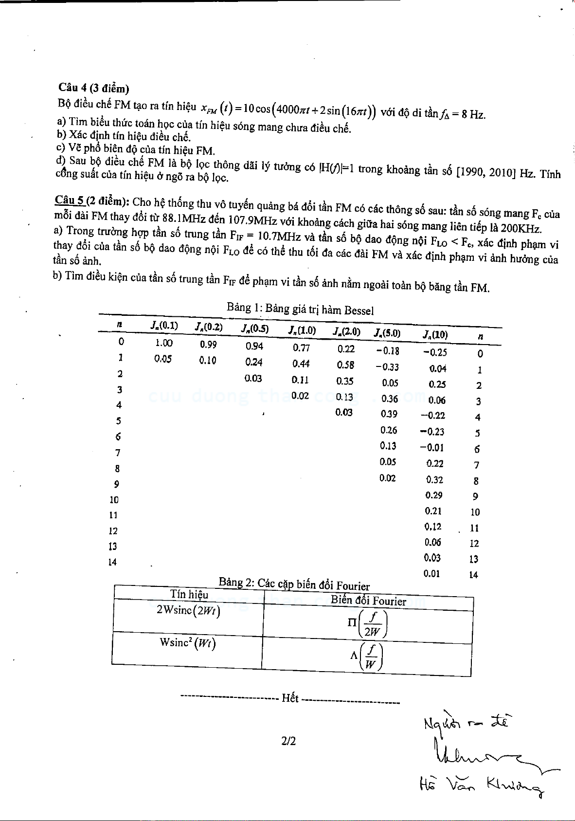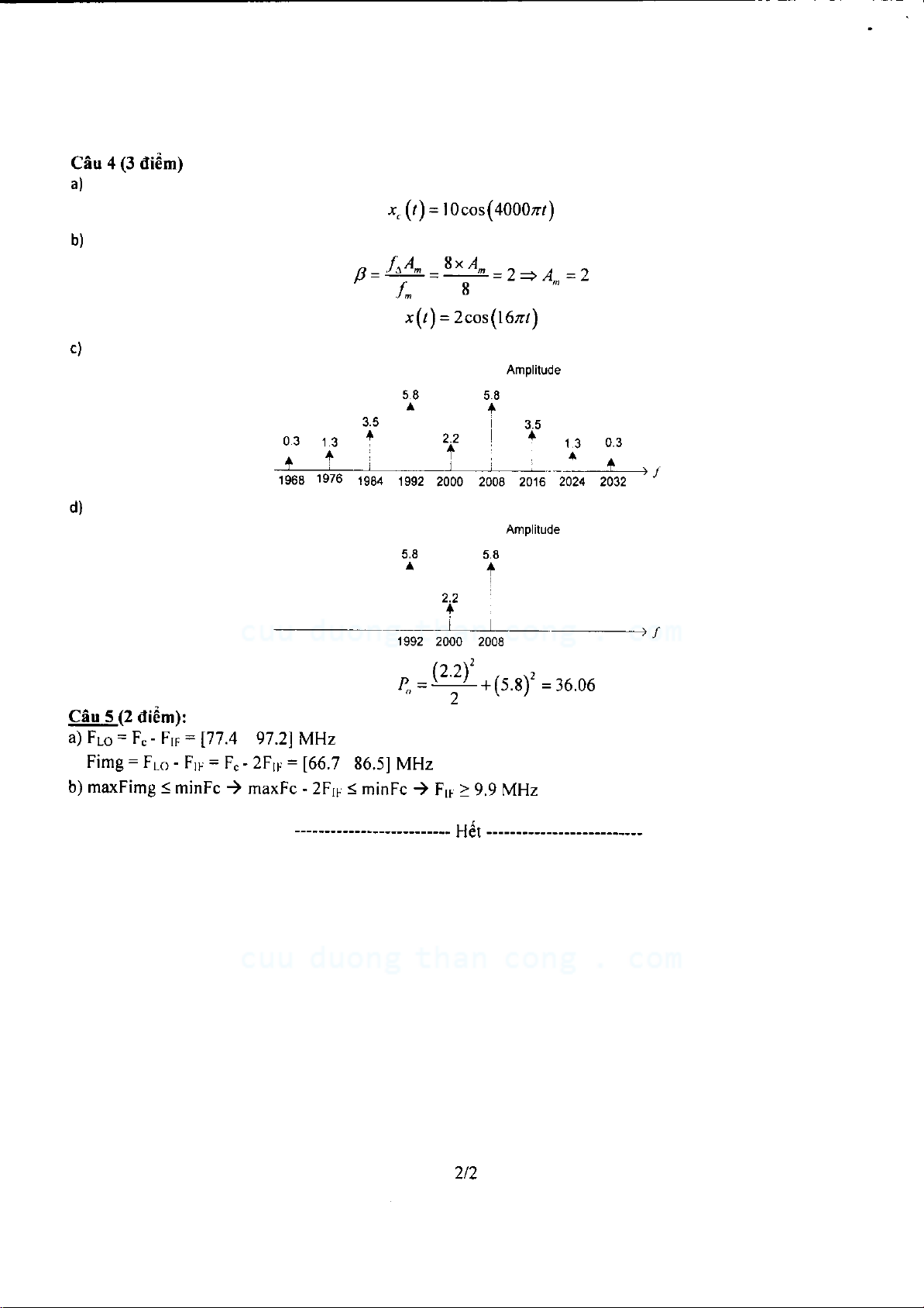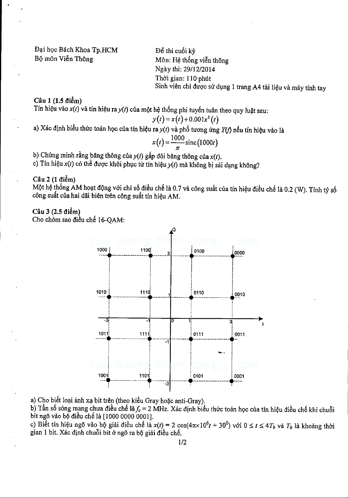Đề thi cuối kỳ môn Hệ thống viễn thông