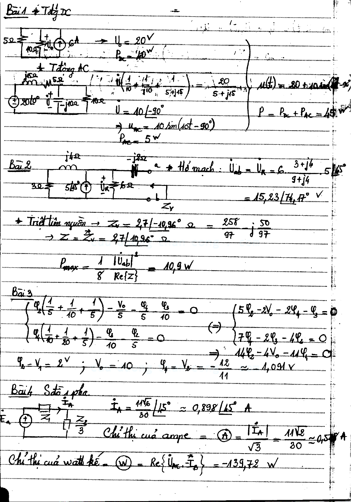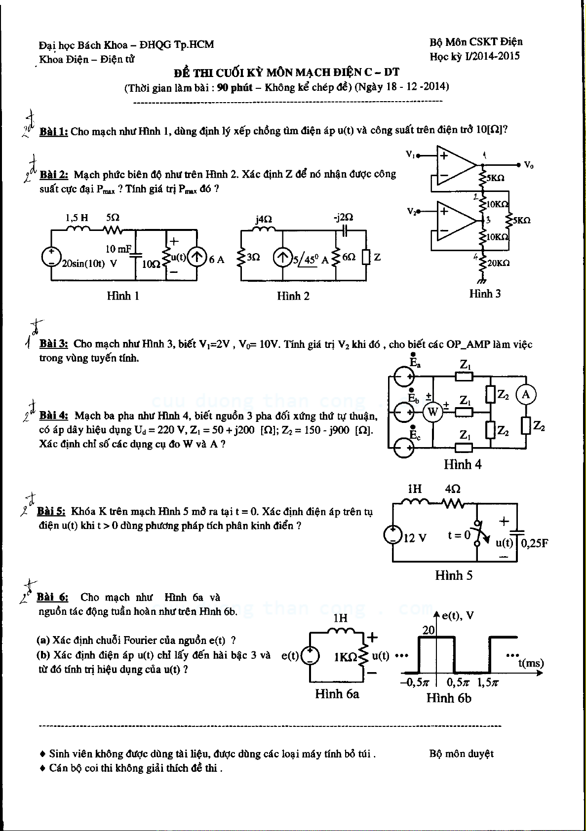 Đề thi cuối kỳ môn Mạch điện C - ĐT