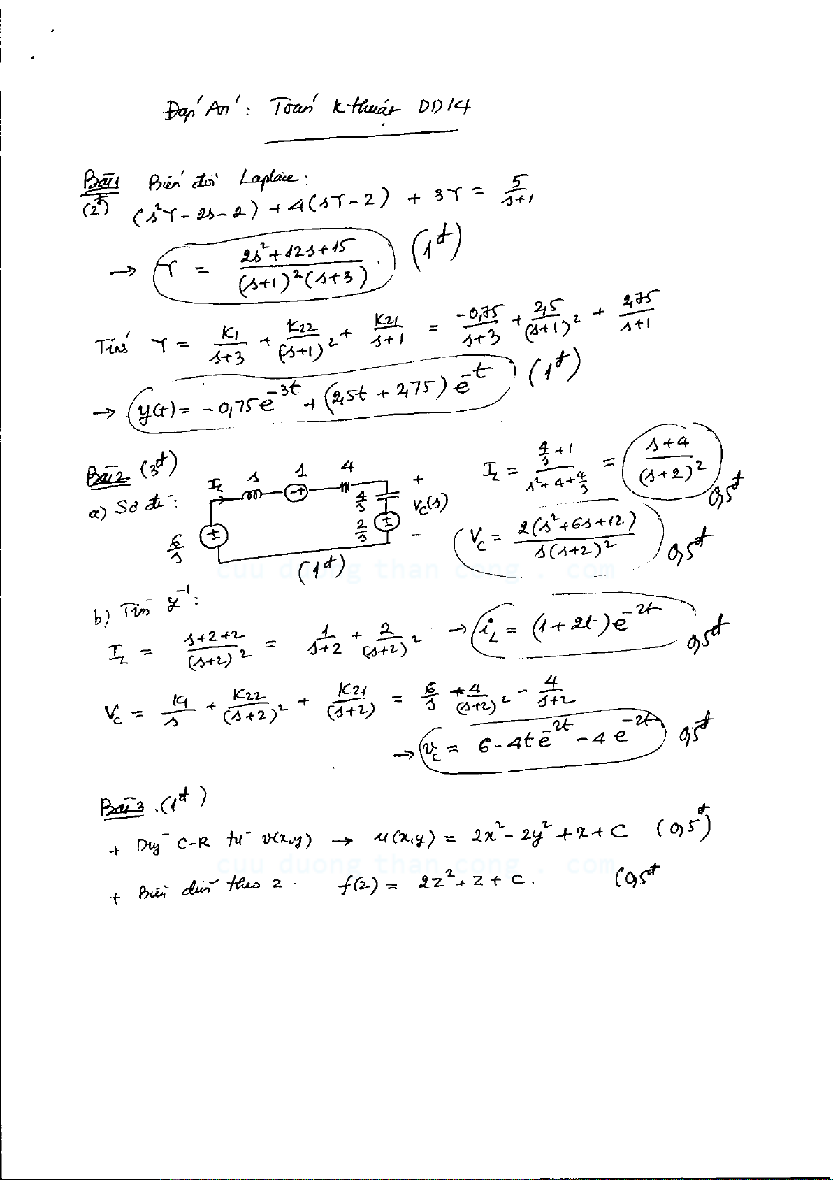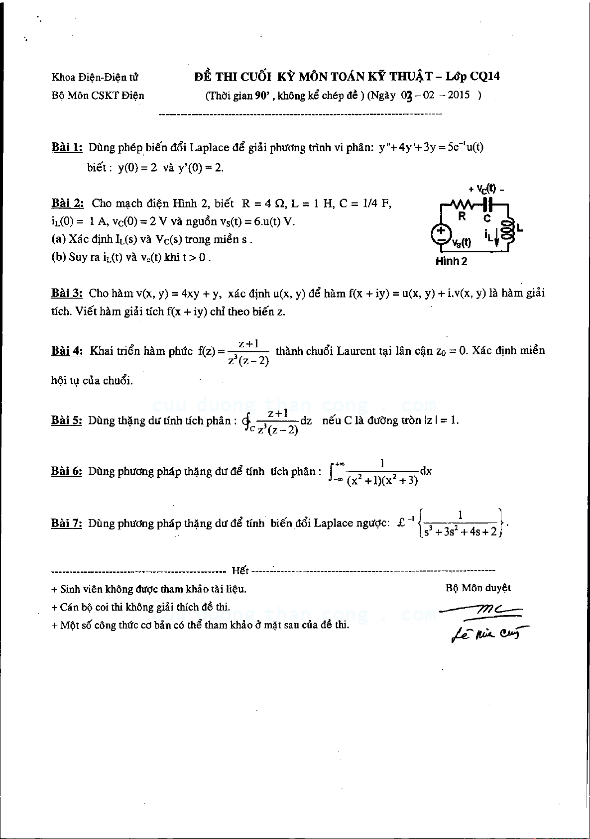 Đề thi cuối kỳ môn Toán kỹ thuật - Lớp CQ14