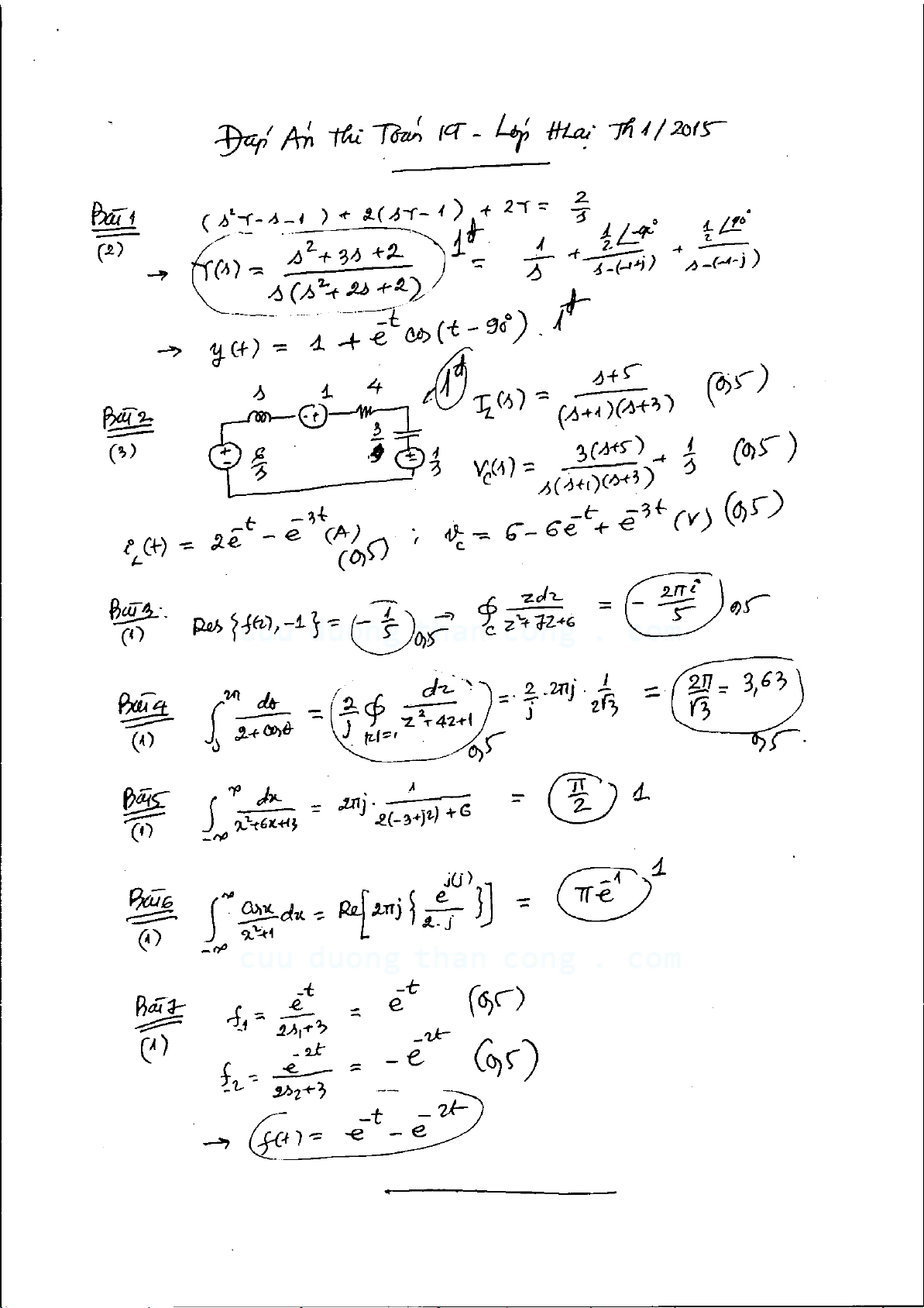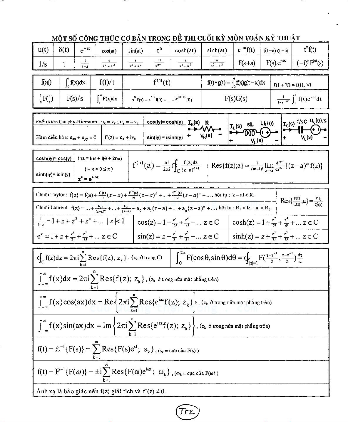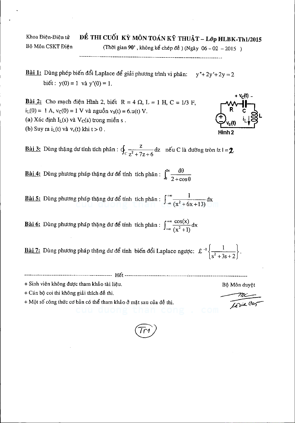 Đề thi cuối học kỳ môn Toán kỹ thuật - Lớp HLBK
