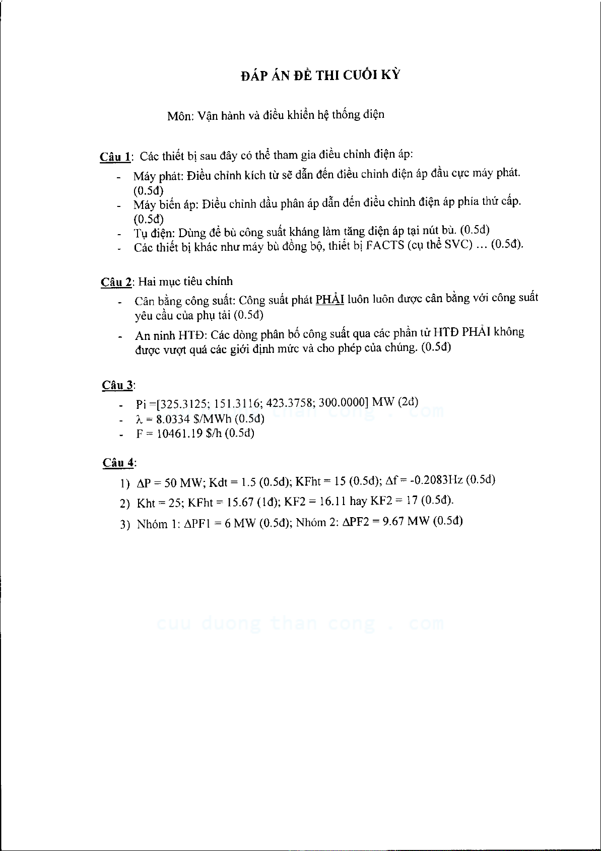Đề thi cuối kỳ môn Vận hàng và điều khiển hệ thống điện giúp các bạn sinh viên có thêm tài liệu để củng cố các kiến thức, ôn tập kiểm tra, thi cuối kỳ. Đây là tài liệu bổ ích để các em ôn luyện và kiểm tra kiến thức tốt, chuẩn bị cho kì thi học kì. Mời các em và các quý thầy cô giáo bộ môn tham khảo.