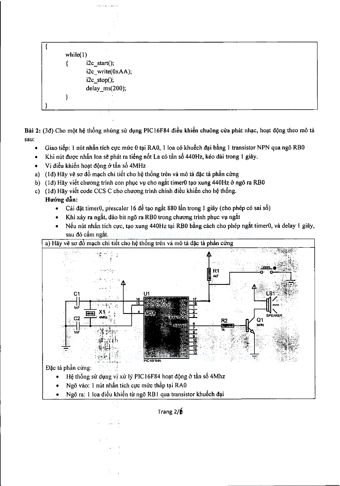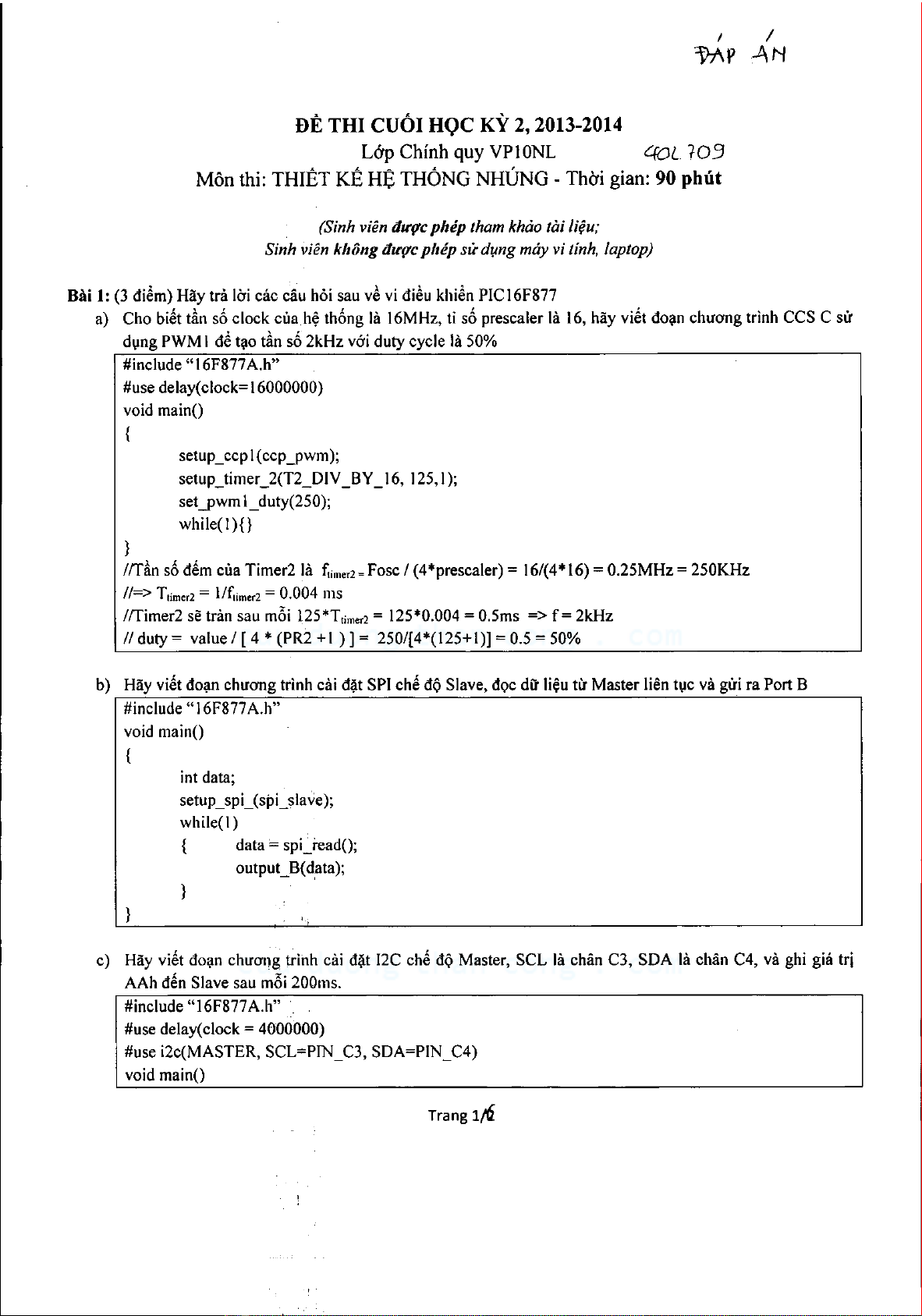 Đề thi cuối học kỳ 2 năm học 2013 - 2014 môn Thiết kế hệ thống nhúng - Lớp chính quy VP10NL