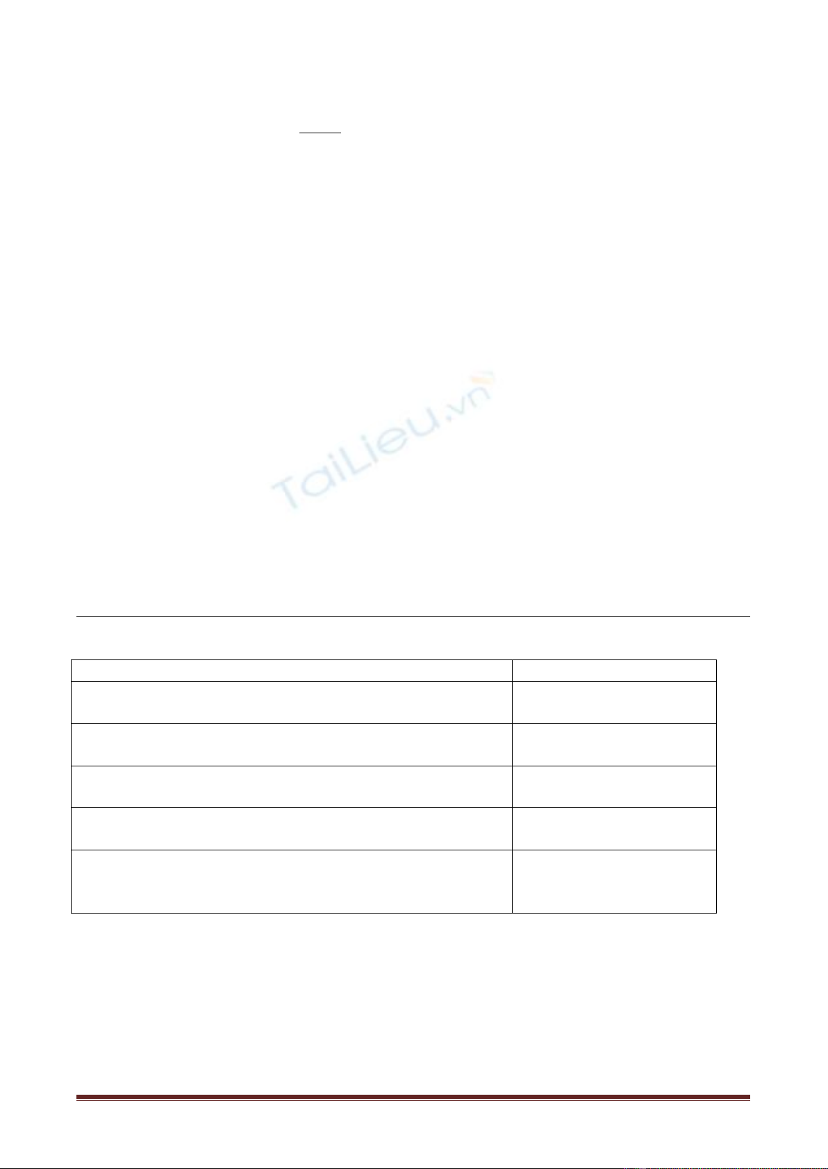 trở, người ta tiến hành đo đạc và thu được bảng số liệu