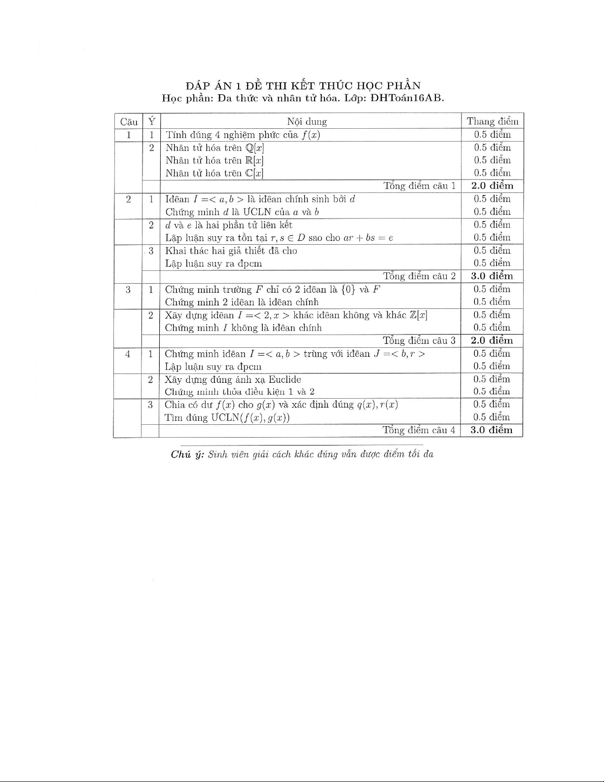 Đề thi kết thúc học phần học kì 1 môn Đa thức và nhân tử hóa năm 2019-2020 có đáp án - Trường ĐH Đồng Tháp