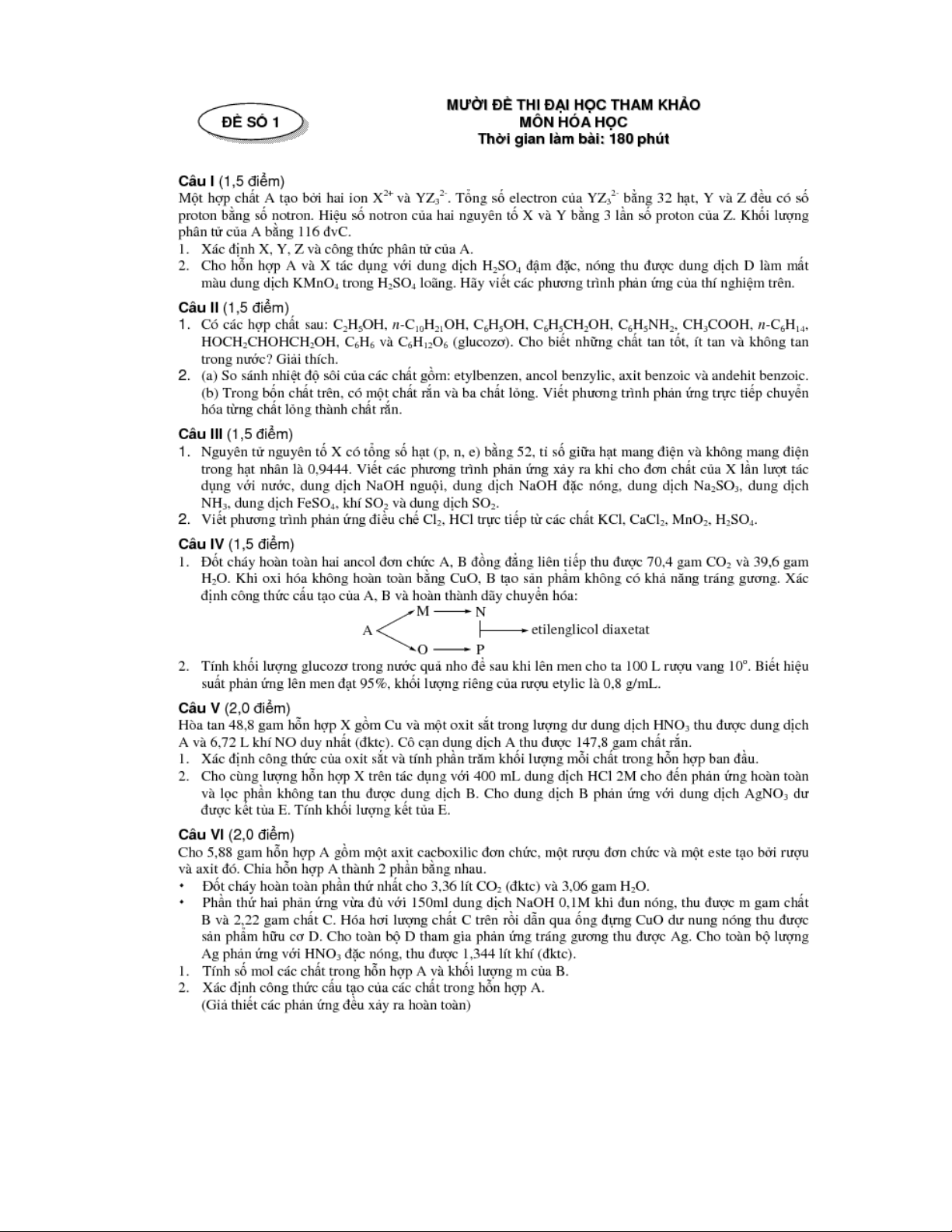 ĐỀ THI ĐẠI HỌC THAM KHẢO MÔN HÓA - SỐ 1