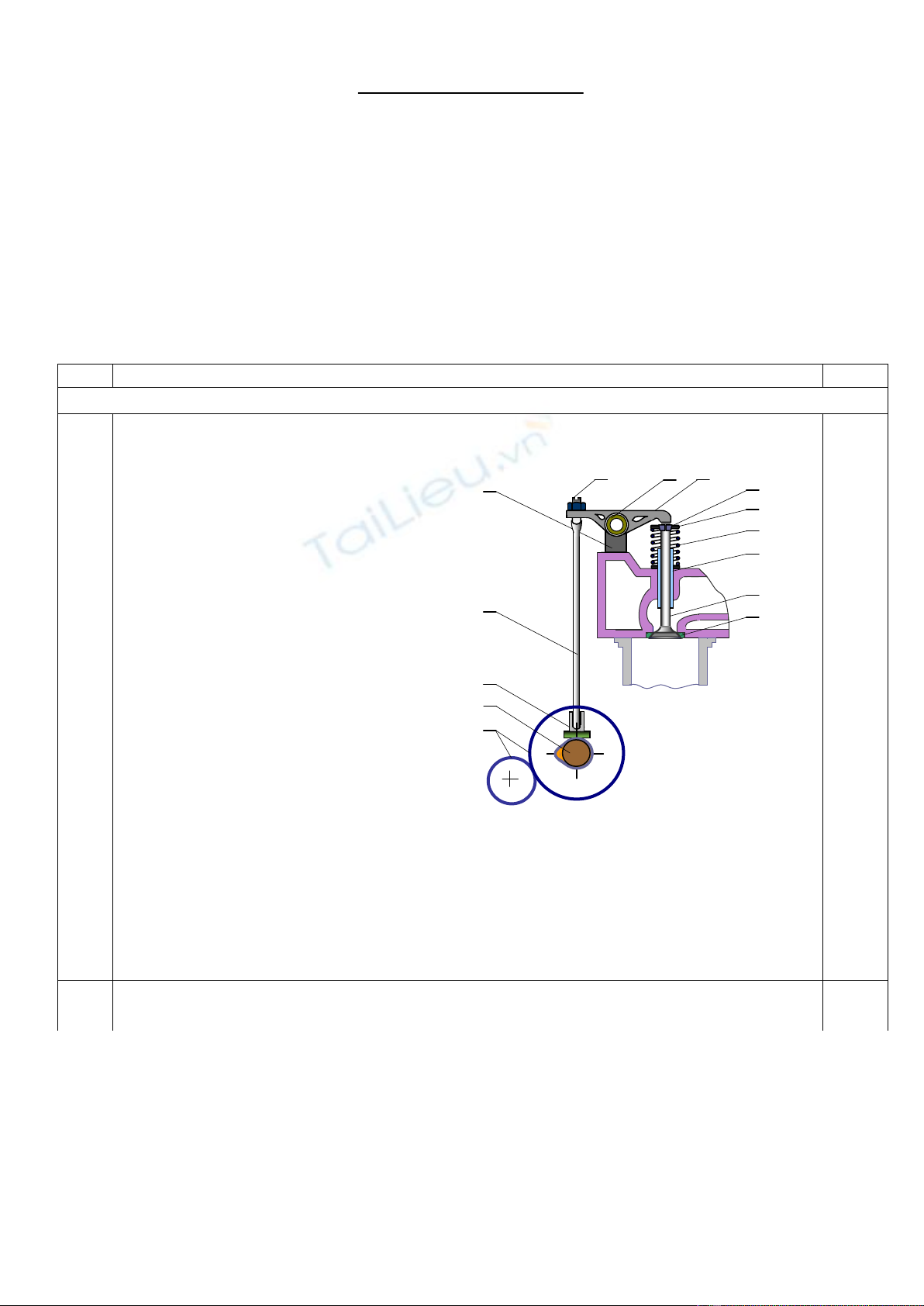 Điền chú thích và trình bày nguyên lý hoạt động của cơ cấu phối khí loại xupáp treo (theo sơ đồ)