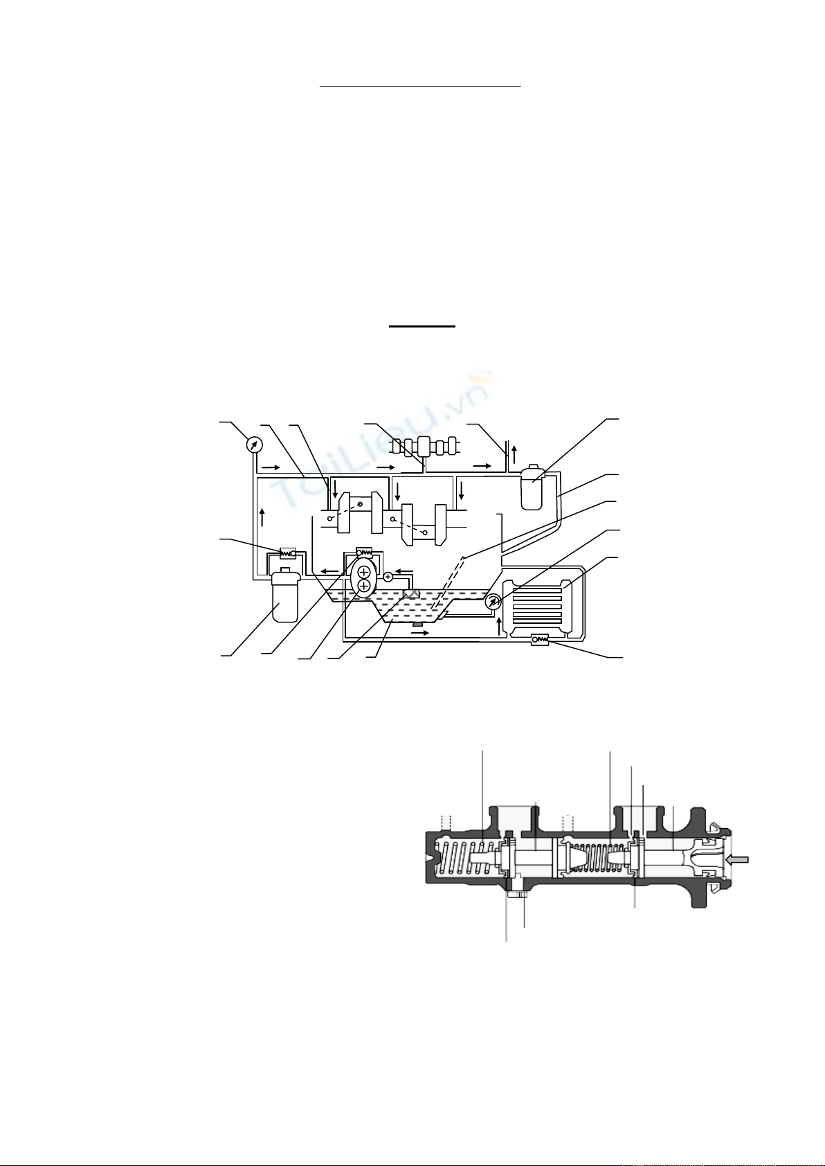 lọc 2 và đẩy dầu có áp suất qua bình lọc thô 5 tới đường dầu chính 8 trên thân máy.