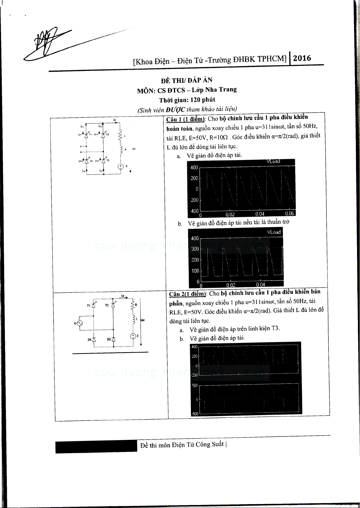 Đề thi - Đáp án môn Cơ sở điện tử công suất