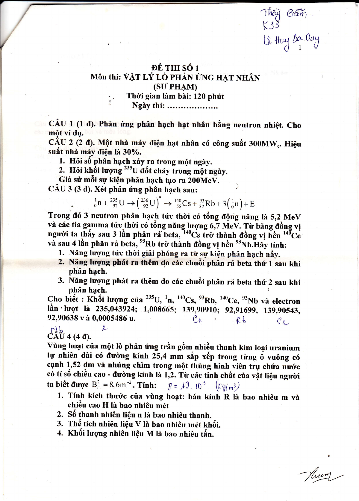 cAu I (1 aD. Phin rr?ng phin h?ch h4t nhin ueng neutron nhiQt. cho