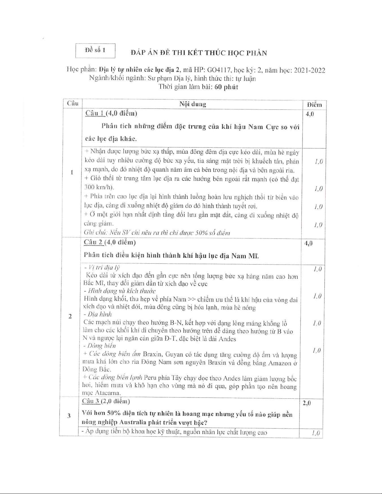 Đề thi kết thúc học phần học kì 2 môn Địa lí tự nhiên các lục địa 2 năm 2021-2022 có đáp án - Trường ĐH Đồng Tháp