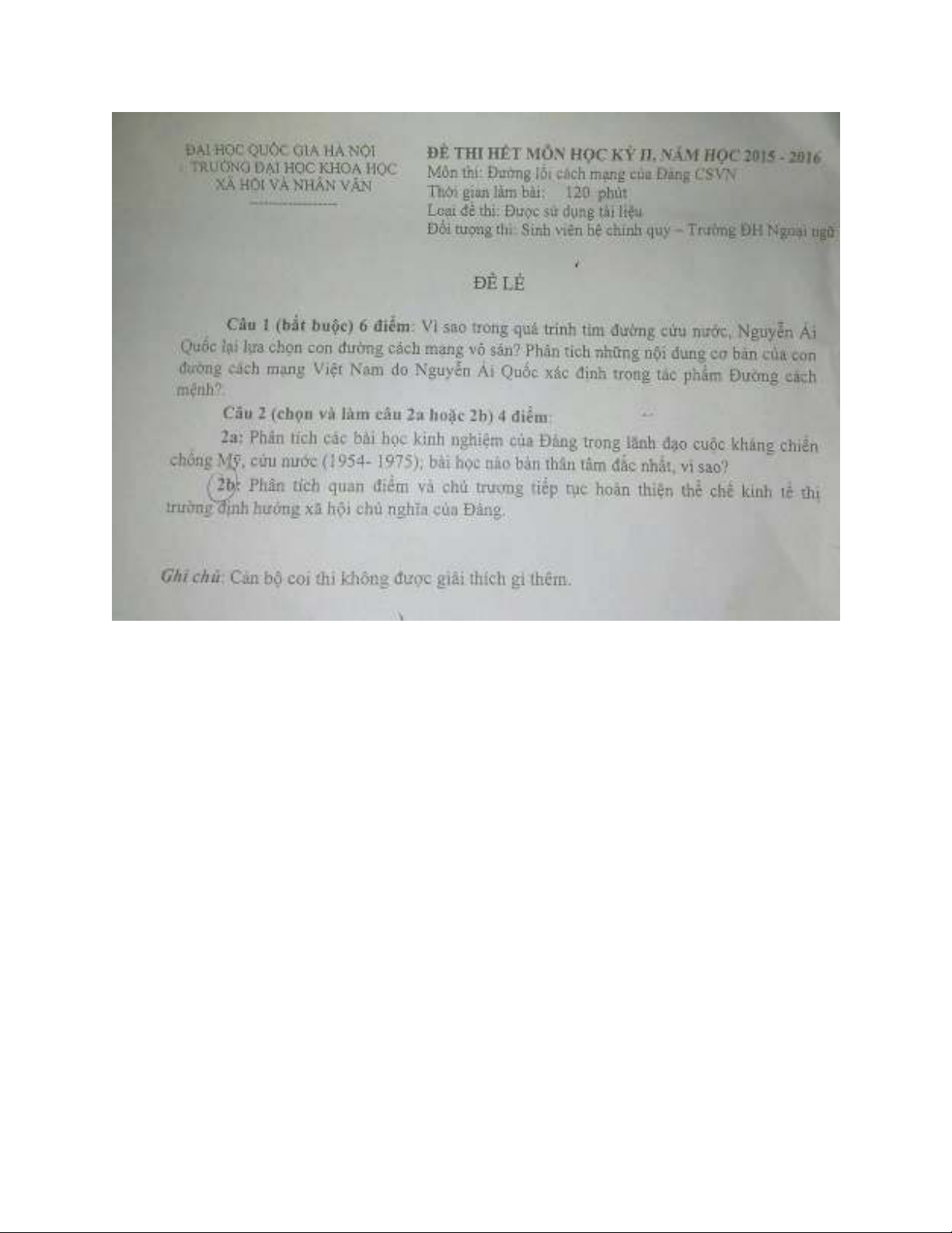 Đề thi hết môn học kỳ II năm học 2015-2016 môn Đường lối cách mạng của Đảng CSVN - ĐH Khoa học Xã hội và Nhân văn