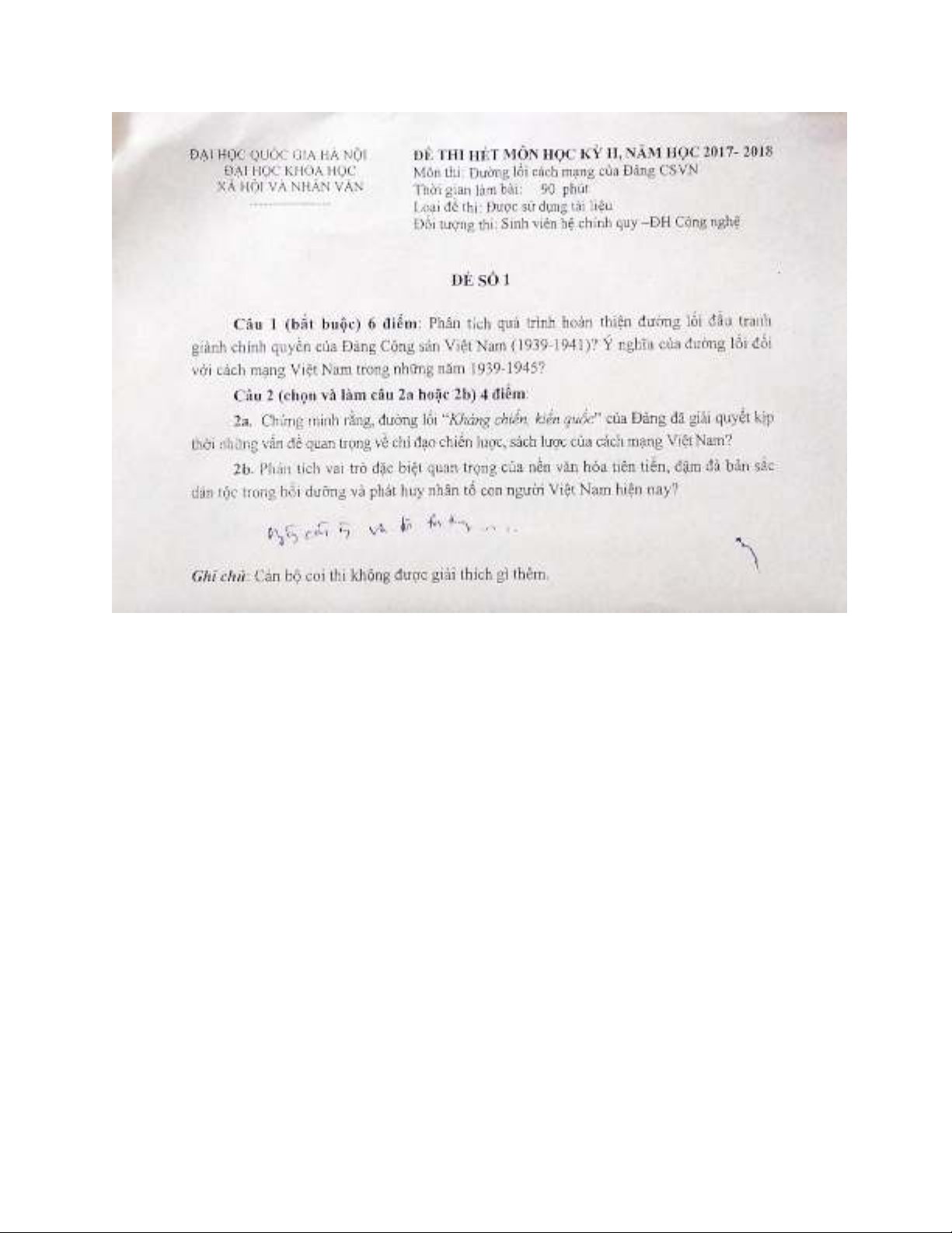 Đề thi hết môn học kỳ II năm học 2017-2018 môn Đường lối cách mạng của Đảng CSVN - ĐH Khoa học Xã hội và Nhân văn (ĐHQGHN)