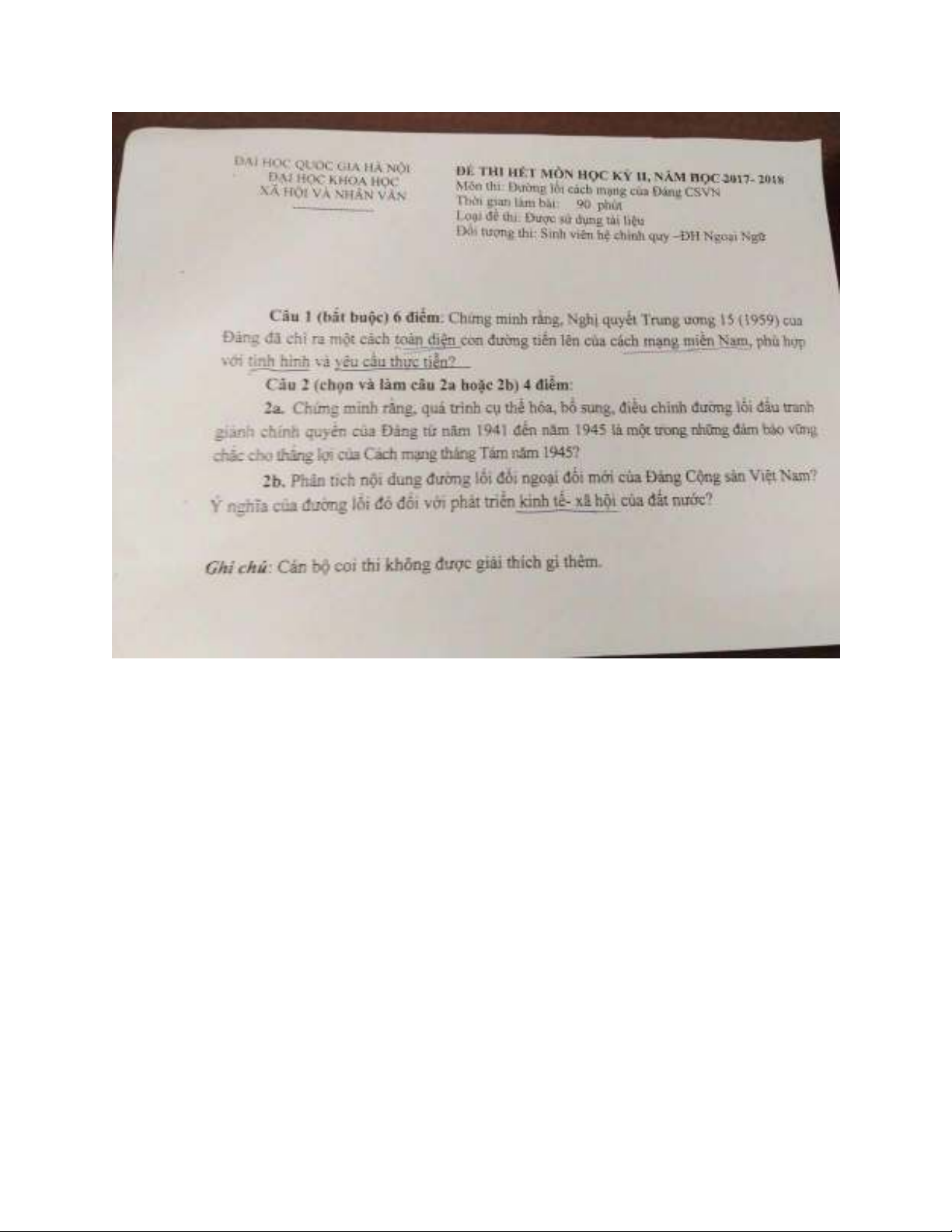 Đề thi hết môn học kỳ II năm học 2017-2018 môn Đường lối cách mạng của Đảng CSVN - ĐH Ngoại ngữ