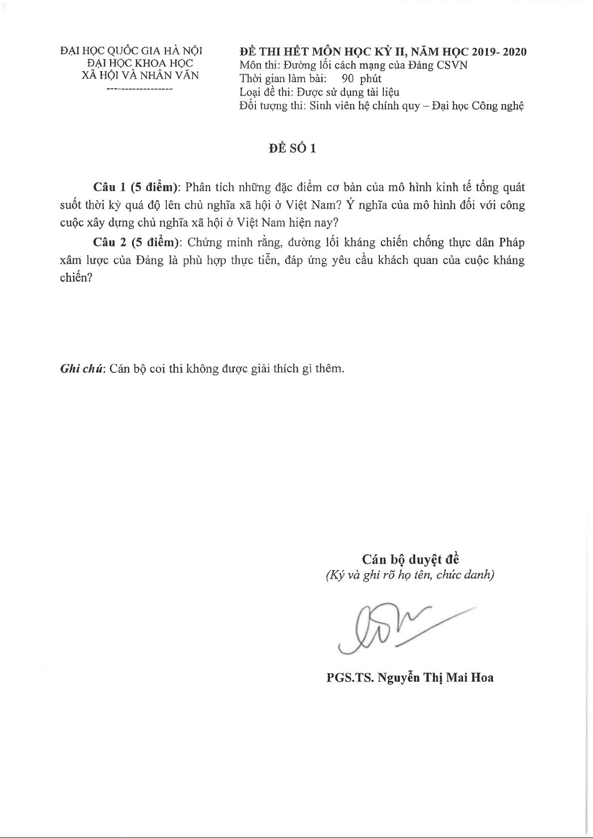 Đề thi hết môn học kỳ II năm học 2019-2020 môn Đường lối cách mạng của Đảng CSVN (Đề số 1) - ĐH Khoa học Xã hội và Nhân văn (ĐHQGHN)