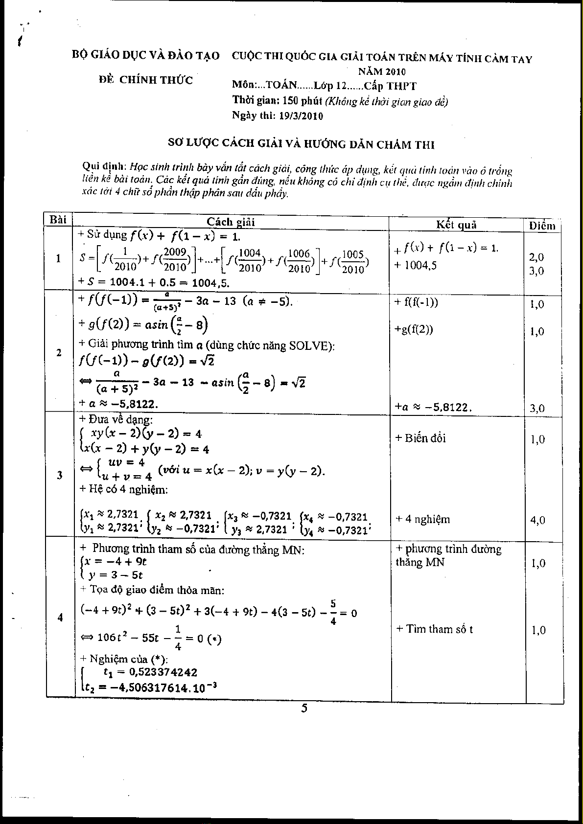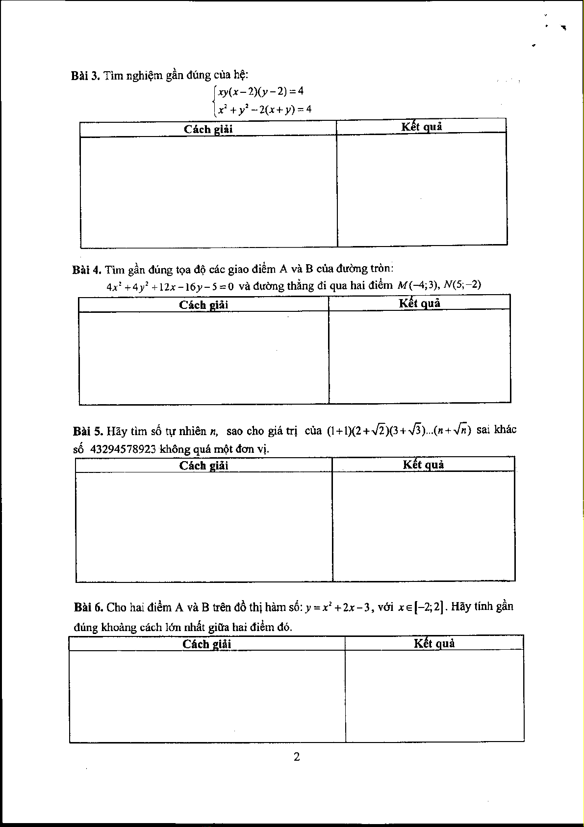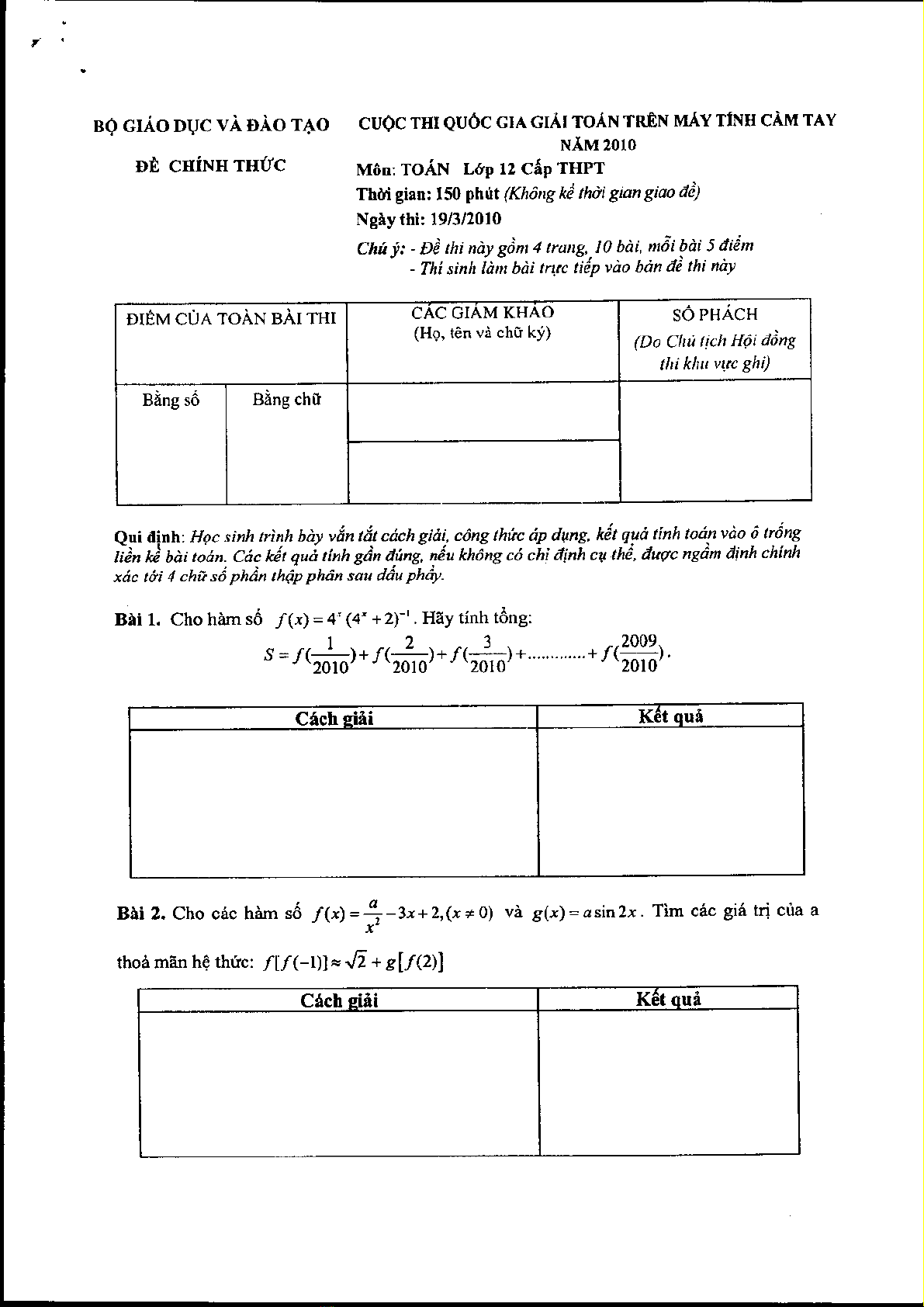 Đề thi giải toán trên máy tính cầm tay môn Toán lớp 12