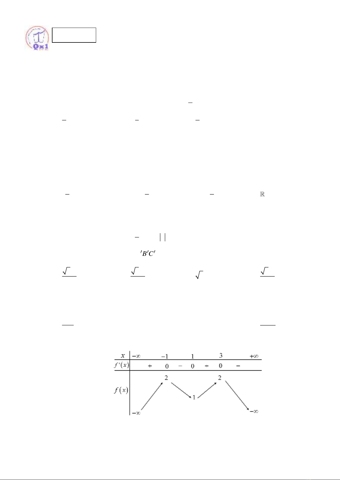 có bảng biến thiên như sau: