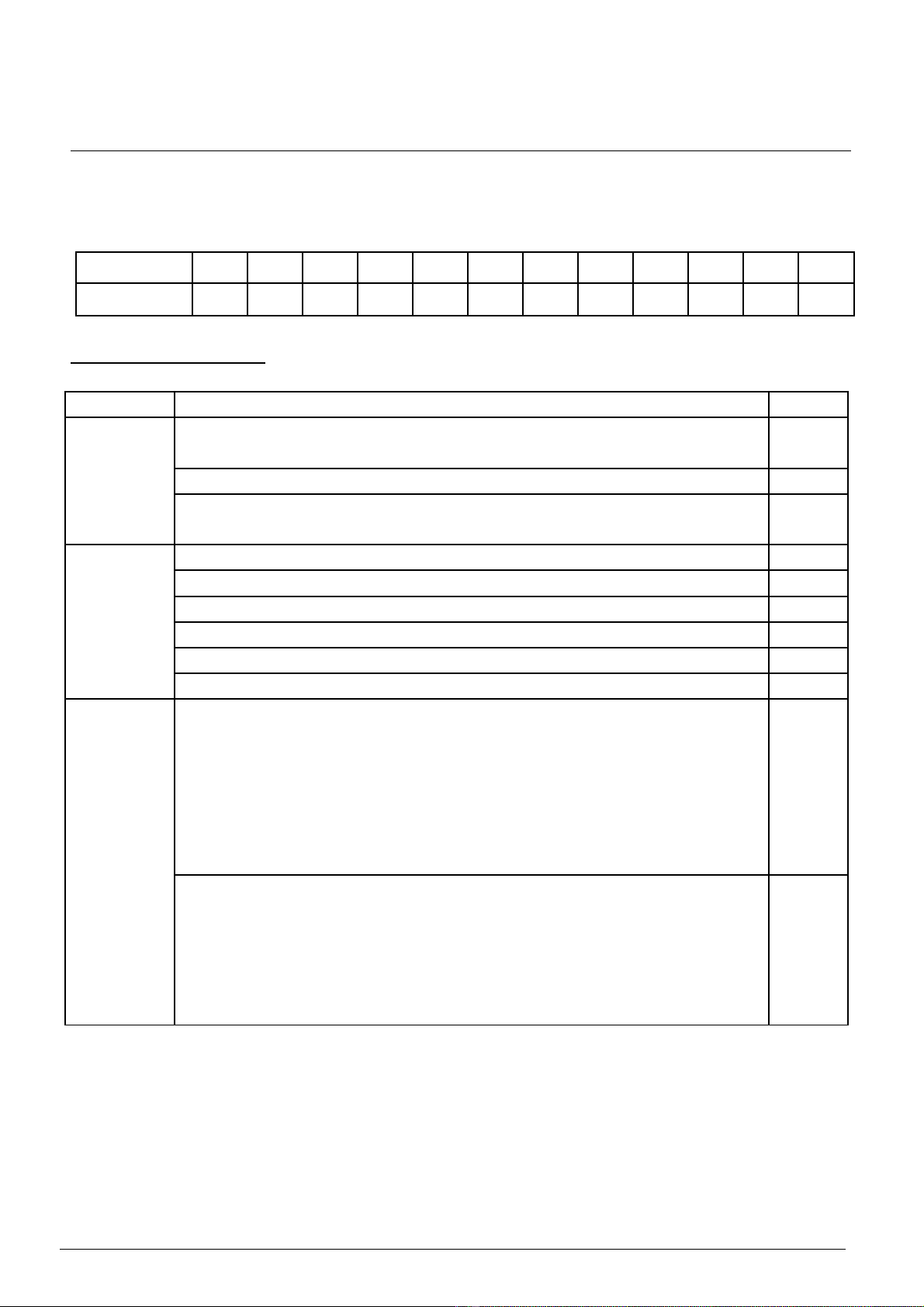 I.Phần trắc nghiệm (Mỗi phương án đúng được 0,25 điểm)