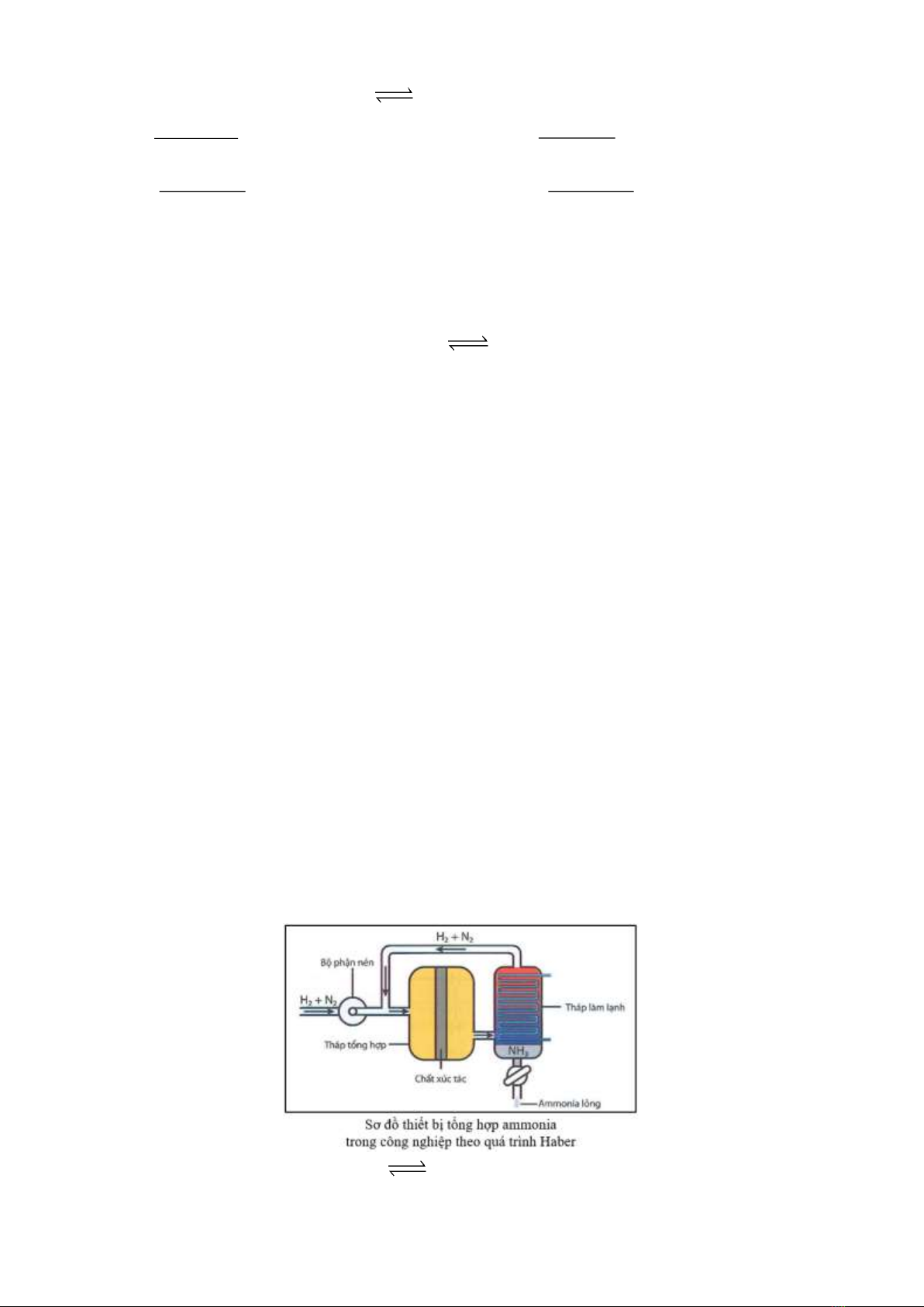 Câu 1: Theo quá trình Haber, ammonia được tổng hợp từ khí nitrogen khí hydrogen theo đồ