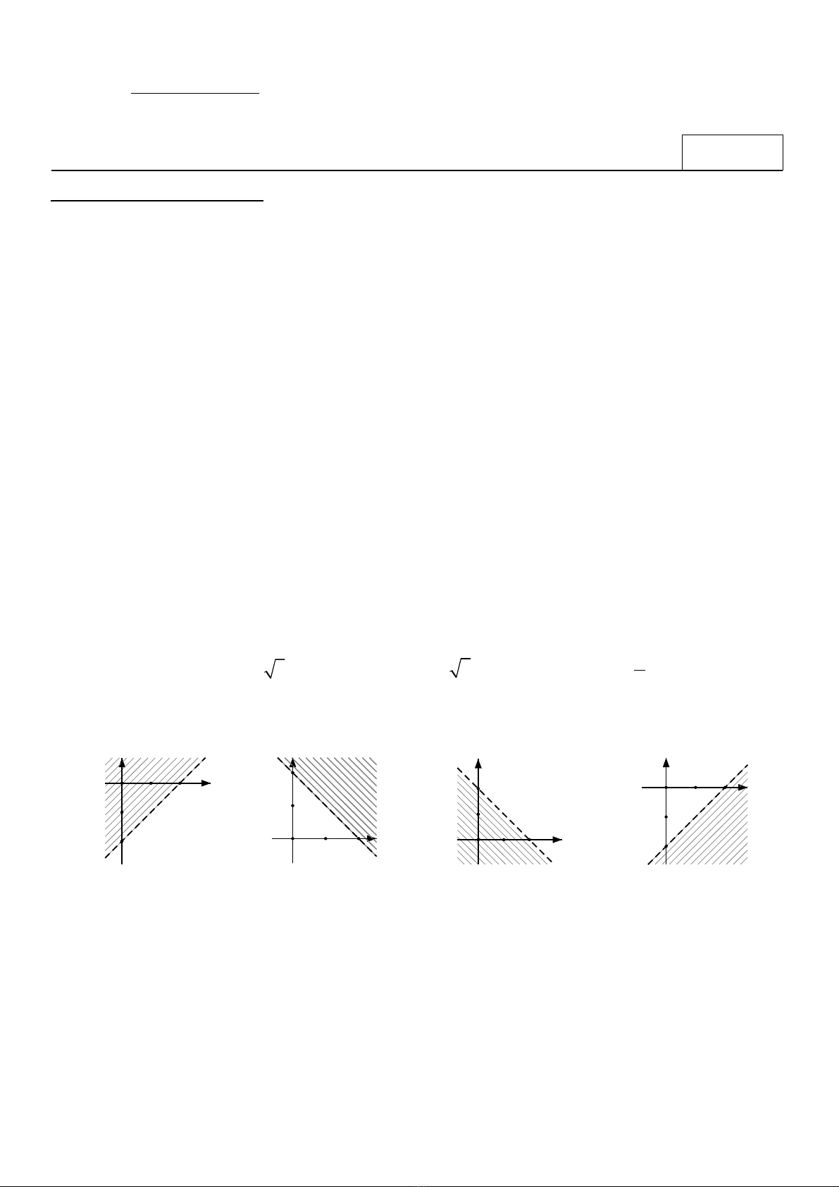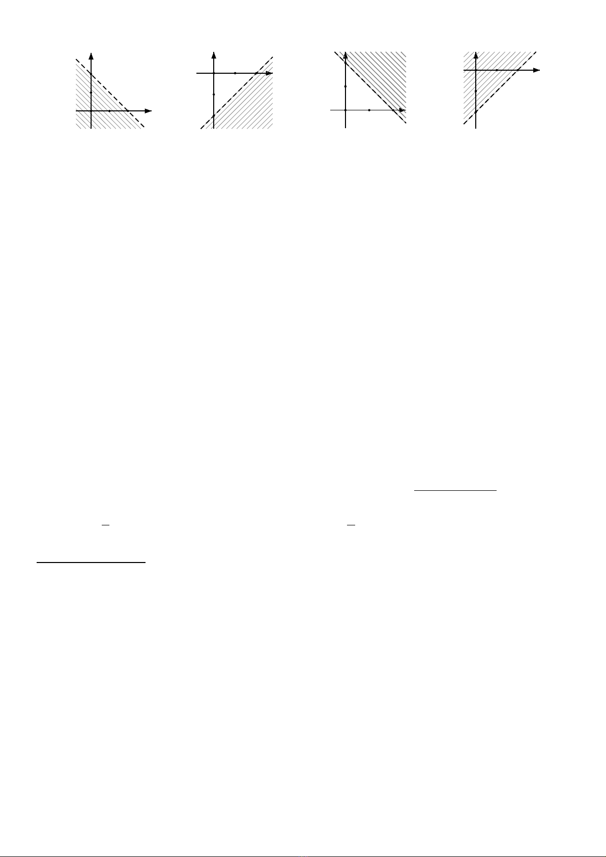 Câu 7: Hình vẽ nào sau đây biểu diễn miền nghiệm (miền không bị gạch) của bất phương trình bậc