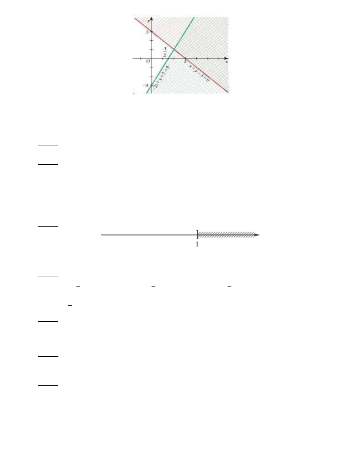 Câu 8. Phần mặt phẳng không bị tô đậm (lấy cả đường thẳng) trong hình vẽ sau đây biểu diễn miền nghiệm