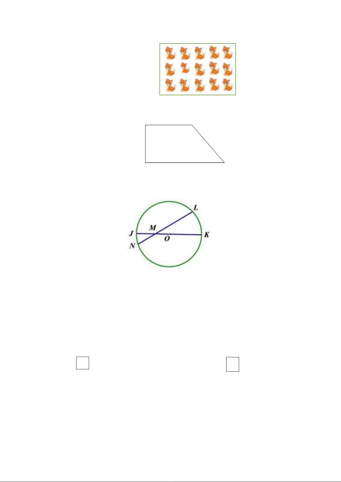 Câu 5: Tâm, bán kính của hình tròn dưới đây lần lượt là: