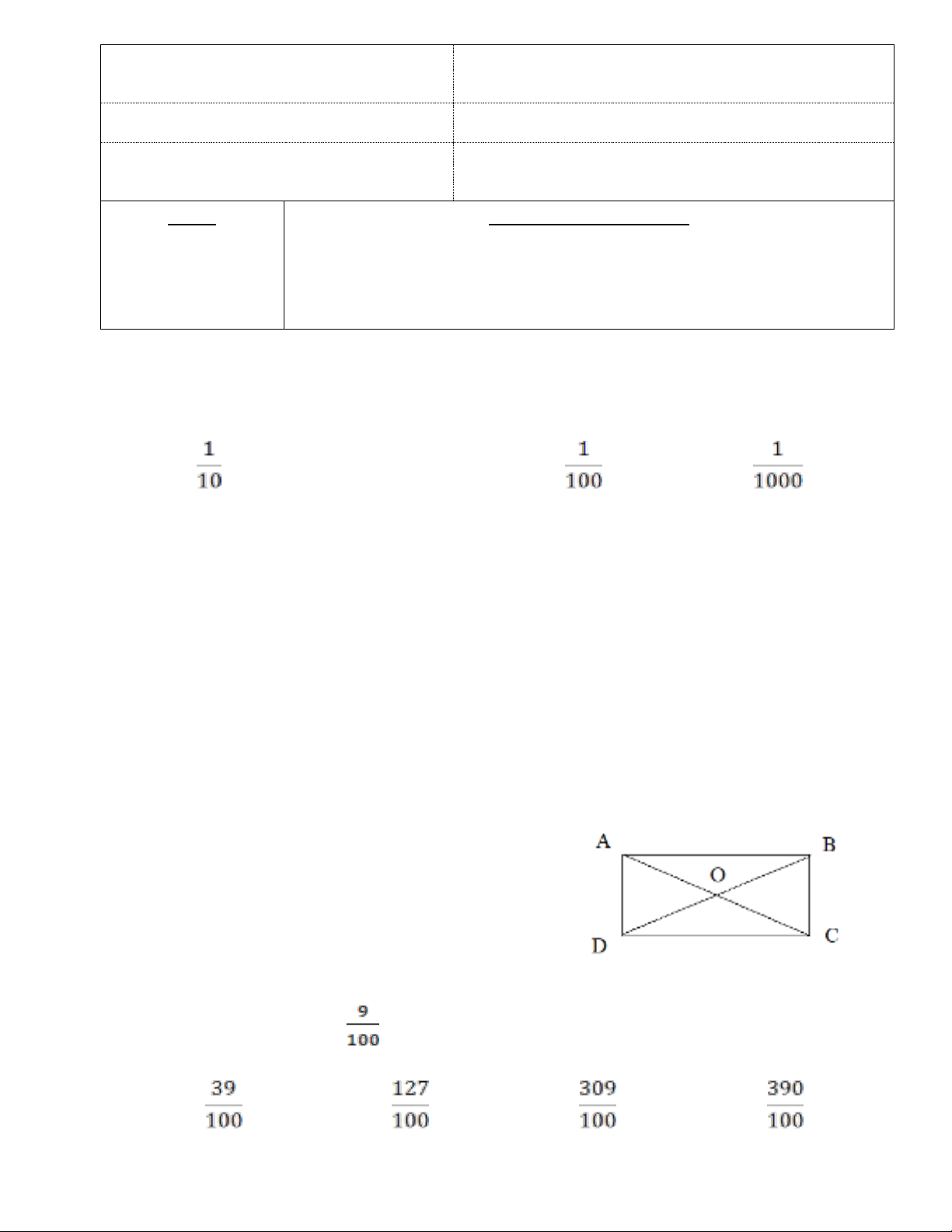 Câu 1. (0,5 điểm) Chữ số 1 trong số thập phân 45,316 có giá trị là: